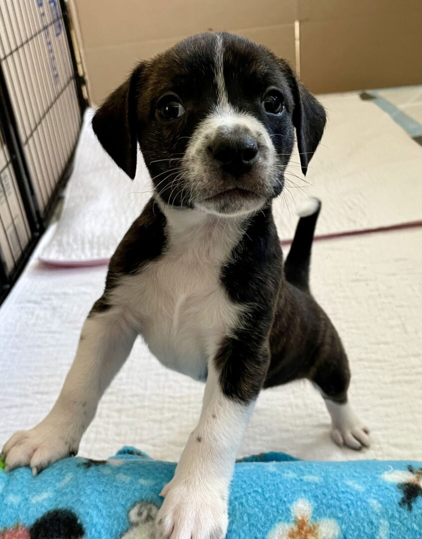 Hi, I'm Duncan. I know what you're thinking, "oh my gosh, he’s so cute!" You'd be correct, I am just adorable. I love to snuggle and kiss my foster mom, and I have that yummy puppy breath. I love wrestling with my siblings and taking long naps. I am 5 weeks old. I am the smallest out of my 6 siblings. I am the only one out of my siblings to have the brindle coloring like my mom. I also have 2 white mittens, 2 white boots and a white tip on my tail. My mom is a great size, about 37 pounds. My foster mom said I will be sweet because my mom is very sweet. My mom, siblings and I were rescued from a shelter when we were 1 week old. The last picture includes a picture of my beautiful mom, Annabelle. Think of the adventures we could have and potential free food with this darling face. I can be your taste tester, lap warmer, or even an Instagram influencer if that's your thing. So, let's just cut to the chase and have your people call my people, and we can set up something. An Adoption Application for this dog can be found and submitted online. http://www.angelsrescue.org/adopt/adoption-forms Please be sure to like our Facebook page: https://www.facebook.com/angelsrescue. Email inquiry@angelsrescue.org Note: Some apartments and neighborhoods have breed restrictions. We verify rental policies and adhere to any regulations. Please ensure you understand those restrictions before choosing a dog.