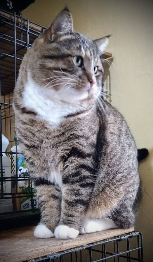 See Dunkin’ (Tabby w/4 wht paws-M)’s HomepageGo to our official websiteYou can fill out an adoption application online on our official website. “Dunkin” has come a very long way since he was sprung from the pound. For a long time the only way he knew how to get attention was to swipe/grab at your hand, which usually was not real comfortable for humans. But he’s begun figuring out that if he lets you pet him and he doesn’t swipe/grab, it probably feels a lot better for both him and you. We think he will get better at this with someone that knows how to win cats and is not afraid of them. And knows not to wiggle fingers in front of his face, lol. We’ve known a few cats like that…a little quirky. And they were also the sweetest. He seems to have gotten more handsome too. Oh go ahead. Take a leap of faith. Adopt him.