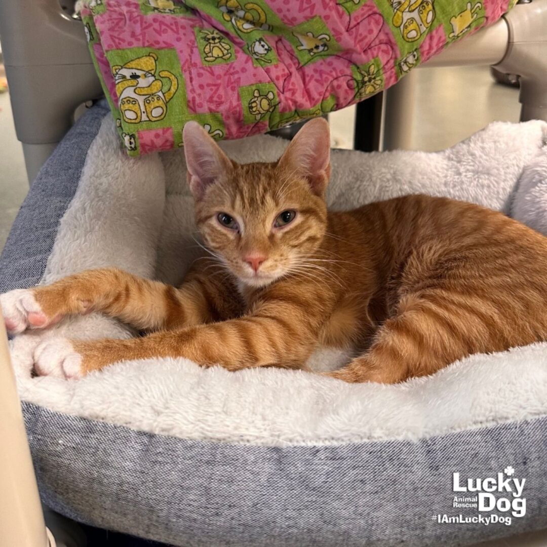 Please contact Lauren McCarty (laurenmc@luckydoganimalrescue.org) for more information about this pet.Sweet boy – ISO a forever home!ED SHEERAN NEEDS A FOREVER HOME! Name: Ed Sheeran Best Guess for Breed: Domestic Short Hair Age: 5 months DOB: 10/12/24 SEX: male Approximate Weight: 5.8lbs Coloring: Orange Tabby Type of Hair: Short Gets Along With: With proper integration, Ed Sheeran will likely get along with other cats, dogs and kids with an acclimation period. We’re happy to help with tips and tricks! Currently Living at: Foster in the DC Area I am Looking For: My loving forever family! Hi! I’m Ed Sheeran, and I am a cute little kitty! I won’t ask for much- just some love, cuddles and lots of toys so I can run and play and be my kitty self. What my Foster Says About Me: Coming soon! TO ADOPT: The adoption fee for adult cats is $200 ($350 for two cats adopted together). The adoption fee for a kitten (under 7 months old) is $220 ($380 for two kittens adopted together).If you are interested in adopting, please complete the Adoption Questionnaire online at bit.ly/adoptaluckycat. Lucky Dog Animal Rescue does our best to provide accurate information about the cats we have for adoption. That said, we cannot make any guarantees about age, breed or temperament. Thank you for contacting Lucky Dog Animal Rescue and helping to save a life! Please visit us online at www.luckydoganimalrescue.org . BE A FOSTER!!! Fosters make it possible for Lucky Dog Animal Rescue to save and care for homeless and abandoned dogs! To learn about fostering, please contact fostering@luckydoganimalrescue.org BE A SPONSOR!!!! Sponsors help Lucky Dog support the many dogs we save. To learn more about sponsorship, please contact info@luckydoganimalrescue.org !