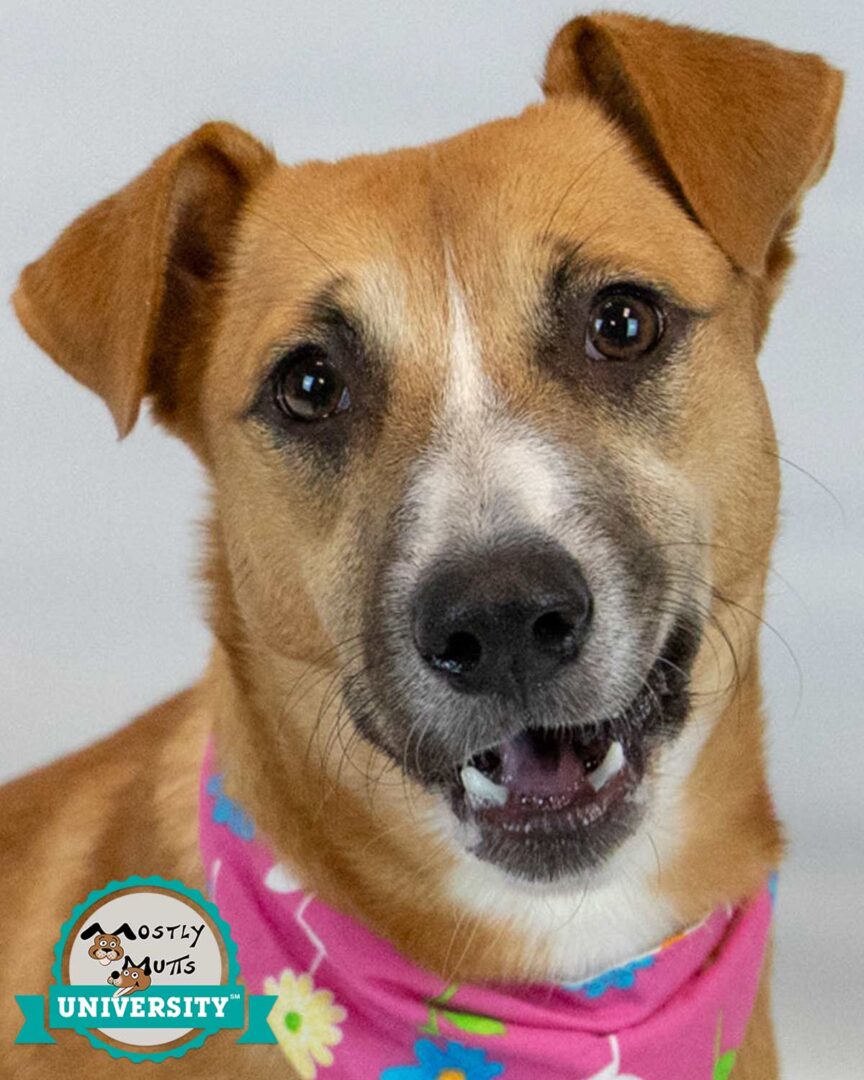 FUN, SWEET & ACTIVE: Approx. 1 year old / Approx. 35 lbs. Hello – I’m Eleanor! I came to Mostly Mutts from animal control, and I am so happy to be soaking up all the love from the volunteers. I’m now ready to find a wonderful home of my very own with a family to love and be loved by! I hope to meet them very soon! • OTHER DOGS/CATS/KIDS: I met other dogs at Mostly Mutts and liked them, so if you have a dog at home already, let’s meet! / Cats unknown. / I haven’t met kids yet at Mostly Mutts, so let’s meet and best no toddlers that I may bump over. • PERSONALITY/ENERGY LEVEL: I’m a sweet, people-loving pup with a wonderful mix of gentleness and enthusiasm. I can be strong and energetic on walks – and I definitely love to jump for joy – so I’m still learning my manners. But during bath time and ear cleaning, I was calm as can be, standing in the tub and leaning against the edge like a pro. I’m playful, friendly, and smart, and even though I can be a bit jumpy and full of energy, my kind heart and lovely personality always shine through. The shelter environment is a bit stressful for me, so I’ve started on 2 anxiety medications that I think I’ll be able to wean off once I’ve settled into my new home. / Energy level: 5-7. • SKILLS/CRATE/POTTY: I'm in the Mostly Mutts University training program and have already mastered the ‘sit’ and ‘leave it’ commands and I look forward to learning more. / The crate isn’t my favorite place, but I’ll go back into it especially if a treat is involved. / My potty manners have been good on the shelter schedule, so hopefully that will be the case in my new home, too. • LIKES/DISLIKES: I really love people, and toys are always a big hit with me, too! As we get to know each other, I’m sure we’ll discover even more things we’ll enjoy doing together. / Other that being a bit stressed in the shelter environment and not really wanting to go back into my crate, I’m sure I wouldn’t like it if I didn’t get enough love, attention, exercise, and training. • MEDICAL: I'm current on annual vaccinations, micro-chipped and spayed. As stated, I’m on 2 anxiety medications for shelter stress that I think I’ll be able to wean off of as I settle into my new home. I’m a fun-loving active girl looking for the same in my new family. My adoption fee is $299.00, and I’m located in Kennesaw, Ga.