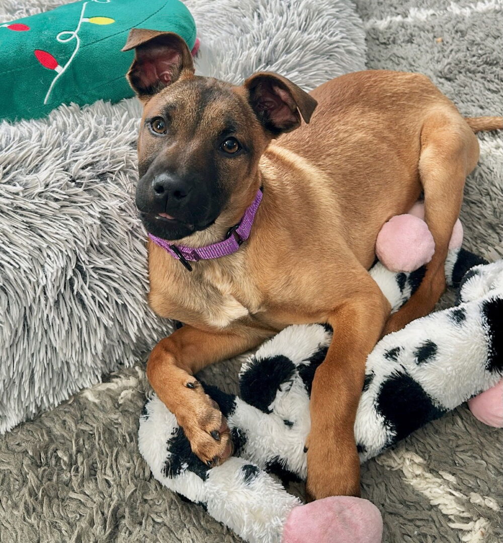 See Eleanor’s HomepageGo to our official websiteYou can fill out an adoption application online on our official website.Eleanor makes the perfect cuddle buddy! She is a 4 month old Black Mouth Cur mix. She LOVES a good bone to chew on. She also loves playing with her toys and when she gets tired she crawls into your arms to take a little nap. Although she is still a puppy she is doing very well with potty training, and is a very quick learner. She has learned to sit, lay down, and give paw on command. She is looking for the perfect family who is ready to help her continue to learn and thrive like the awesome dog she is meant to be. Apply here: https://projecthopearf.rescuegroups.org/forms/form?formid=6732