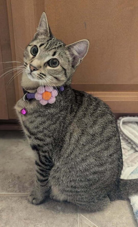 From her foster "Elentiya means "Spirit that Cannot be Broken," and this kitty has earned her name! Despite coming to PAR sick and covered in fleas, she still has a playful side and love for snuggles! After a long day of playing with toys and chasing her sisters, Elentiya likes to curl up in your lap for attention (and nap time)."