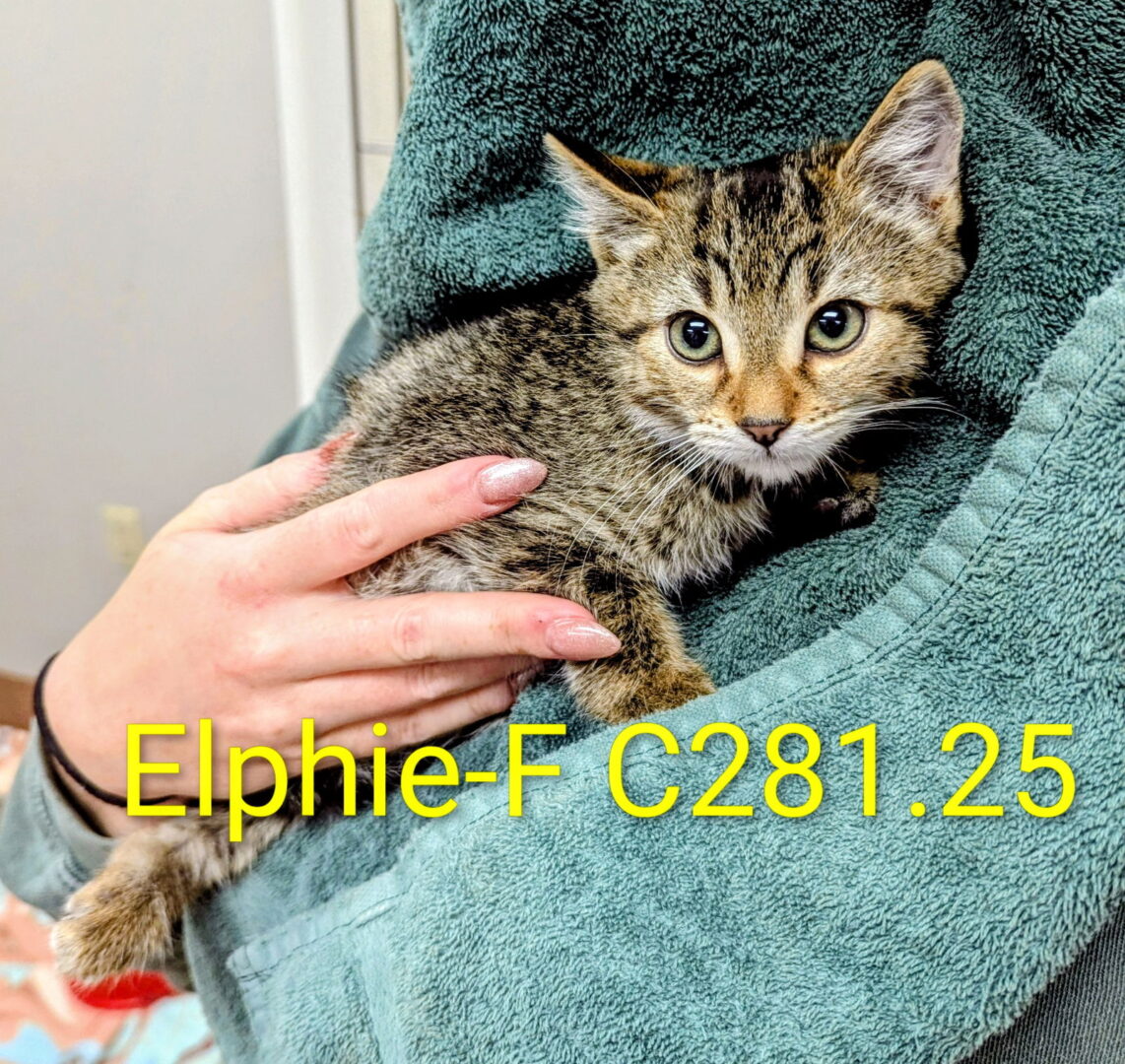 Elphie is a Female Brown Tiger DSH Kitten Here is the adoption process: To adopt an animal you must complete an application and be approved. There is a $60 fee for any animal which needs to be cash or a check – NO CREDIT CARDS. If the animal is not spayed or neutered, there is a $35 deposit which will be returned upon proof of surgery. All dogs must be licensed before leaving the Shelter. Please note that public offices that issue dog licenses are not open on Saturdays and Sundays. All cats must leave in a carrier. Thank you for considering a homeless animal.