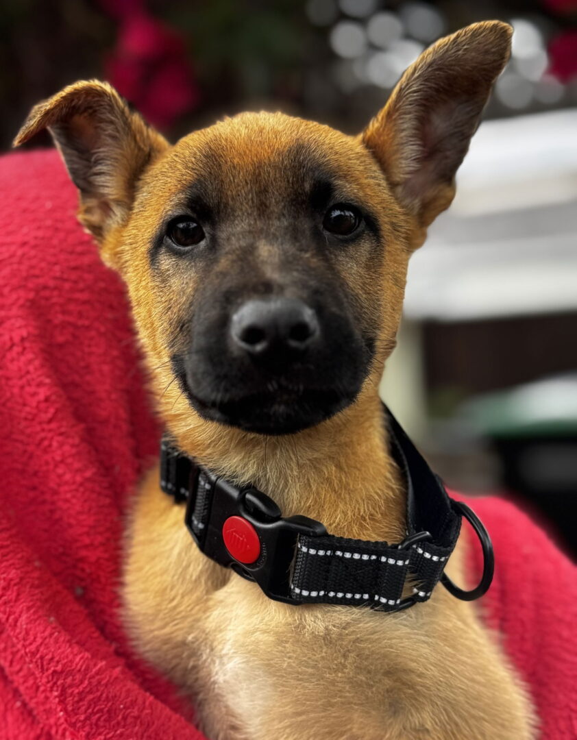 Elton IS AVAILABLE (updated 12-03-2025). To meet any of our dogs, complete our online adoption application on our website: http://www.coastalgsr.org/dogs/elton-1 The six “E litter” puppies were found in a shelter drop box. They were very dirty but appeared to be surprisingly healthy. There are five boys: Echo, Easy, Elton, Ethan, and Everest, and one girl: Emma. They are 3 months old and weigh 15 pounds. Emma and Elton are light blond; the others are black and tan. They are German Shepherd mixes but how much GSD, we aren’t sure. They are in a foster home where they have settled in nicely and their foster mom is learning more about each of their personalities. Elton has a big personality. He loves people and will scramble to get to greet people who come to visit the litter. The minimum adoption donation is $375 for adults and $500 for puppies. This helps cover vet care, boarding fees, and other expenses. All dogs are spayed/neutered, vaccinated, and microchipped.