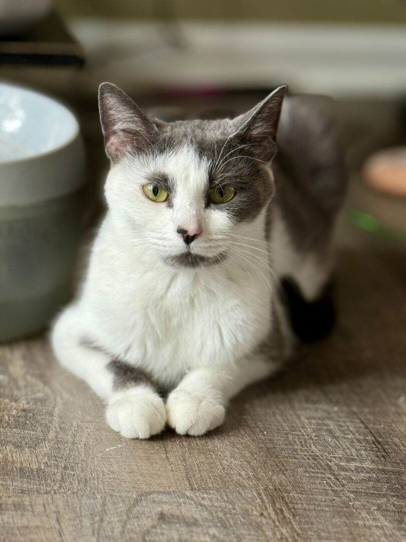 If you are interested in adopting an ARPO pet, please visit our website, for details about our fees and process, and to complete our Adoption Application. ARPO limits adoptions to within 50 miles of Indianapolis. We do not have a shelter; all pets are in volunteer foster homes. Emerald Isle "Emma" is a beuatiful grey and white cat that has raised 6 beautiful kittens and she is ready to retire and find her happily ever after. She's young – around 1 years old and not very big. She walks up to her foster mom for pets and attention. She isn't the greatest office assistant because she does climb onto the desk / computer for attention at times. I think she would be best as a single lady, so she can have all the attention. Emma is spayed, microchipped, utd on vaccines and tested negative for FIV / FeLV. She is being fostered on the southside of Indianapolis.If you are interested in adopting an ARPO pet, please complete the online Adoption Application. If you would like to donate to this pet's care, please click here.