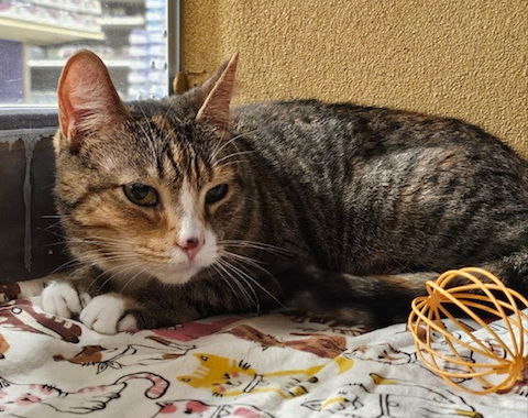 Supurr-Machine!! Meet Emma, a beautiful female tabico, 1-3 years old. Emma loves to be petted on her back and when she settles in, under her chin. She has the cutest little squeak and a purr that doesn’t stop! Emma also loves to follow you around. Wand toys are her favorite, but she also loves to play with mice and balls. Her love of humans makes us think that she must have been someone’s pet previously. She was already spayed when she came to Forgotten Cats, but unfortunately, she was not microchipped. Emma is not comfortable around dogs. She tolerates other cats but would probably prefer to be an only cat. Emma is playing with her foster family. Please submit our no-obligation adoption application for a meet and greet or to adopt: https://forgottencats.org/adoption-application/. Thank you! (Foster: Sharon M.)