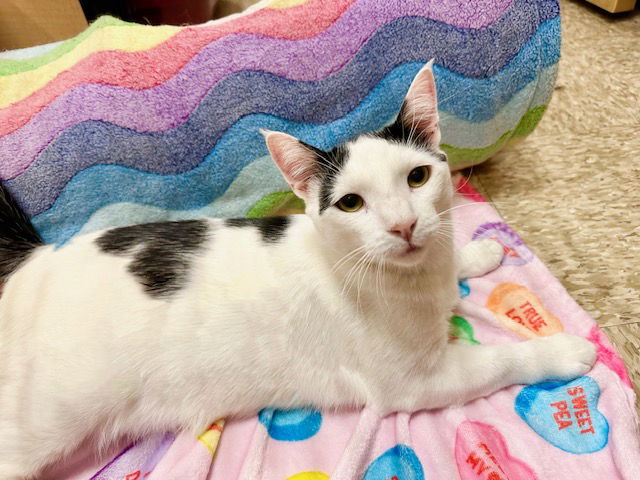 I am currently available for adoption at the Irvine Petco. If you’re interested in adopting me, fill out an application on our website www.carmaoc.org Hi! My name is Energizer and I am a bit shy and take time to warm up to people. Once I am comfortable, I like to lay near people and get pets. Sometimes I like to give nose nudges to people. I am very playful and tend to throw my toys up high in the air and jump on them. I have been fostered with dogs and other cats and get along with all. My adoption fee is $175. That includes spay/neuter, microchip, FIV/FeLV combo test, current vaccines and health check.