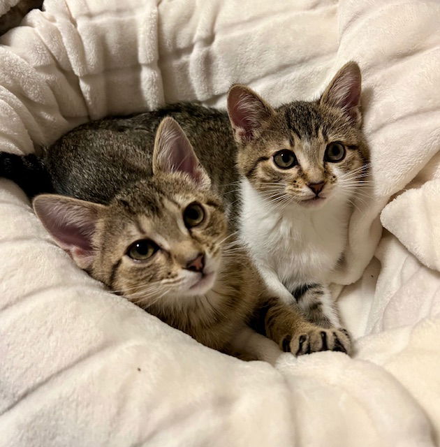 See Eraser & Notebook’s HomepageGo to our official websiteYou can fill out an adoption application online on our official website. Meet Eraser & Notebook: The Purrfect Sister Duo! Eraser and Notebook are two sweet lovable sisters who bring double the sweetness and twice the snuggles! These two playful girls adore belly rubs, chasing each other around the house, and curling up together for long cat naps. Whether they’re cuddling up for movie night with you or pouncing into their next adventure, Eraser and Notebook are a duo full of love, laughter, and endless purrs! This soft white and brown tabby is the ultimate cuddle bug, happiest when snuggled up in your lap for a cozy night. She has the sweetest habit of lying upside-down, paws in the air, completely content! When she’s not busy playing with her sister, she’ll seek you out for a quick nap in the crook of your neck, purring softly as she drifts off. Sweet, affectionate, and always ready for a snuggle, Notebook is the perfect little companion to fill your days with warmth and joy. Her sister, Eraser, is a stunning brown tabby with a charming white-tipped tail and a soft, cream-colored chest that makes her even more irresistible. She’s as intelligent as she is adorable—always eager to solve cat puzzles and explore the world around her. A gentle soul, Eraser loves peaceful moments and soft affection but has a playful streak too—she can never resist a good laser chase! Though she may be a little shy at first, once she feels at home, she’ll warm up quickly and soon be asking for hugs and cuddles. If you're looking for adorable loving companions who balance sweetness and fun, Notebook and Eraser are the perfect match for you! Interested in adopting? Please complete an interest form on our website here . If you are viewing this listing on PETFINDER there is often MORE INFO ON and MORE PICS OF the animal DIRECTLY ON OUR WEBSITE. http://redemptionroadrescue.rescuegroups.org *Adoption Fee for both kittens together $450 + MN tax unaltered, with agreement to spay or neuter by adopter's vet, at adopter's expense.* redemptionroad.mn@gmail.com https://www.facebook.com/RedemptionRoadRescue All kittens fully vetted appropriate for age: FVRCP/Distemper 1st vaccine, microchipped with lifetime chip registration, dewormed.