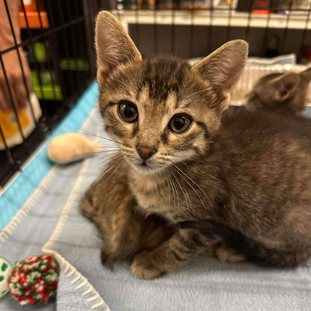 Meet Espeon – The Soft-Spoken Sweetheart with Lightning-Speed Zoomies! Espeon is a handsome little tabby boy with a quiet, thoughtful nature. He may observe the world from the sidelines at first, but once he feels comfortable, he turns into a playful and curious explorer—especially when his siblings are involved! His favorite toys are anything that crinkles, jingles, or rolls… and he’ll happily chase his beloved crumple balls all over the house.Though cautious with new people, Espeon is slowly discovering how wonderful pets and chin scratches can be. He enjoys gentle affection and is gaining confidence day by day. A little patience will help him fully blossom into the loving companion he’s already showing he wants to be.But don’t let his quiet personality fool you—this kitten has some serious superpowers! Espeon is incredibly fast, zipping from one side of the room to the other like he’s teleporting. One moment he’s beside you, the next he’s across the room pouncing on a toy. Because he’s still so young and loves having feline buddies to wrestle and snuggle with, Espeon must go to a home with another friendly cat—or be adopted with a sibling—to help him feel safe and supported.If you’re ready to bring home a gentle, playful kitten who just needs a little time to show his full loving heart, Espeon is waiting to zoom into your life. WE DO NOT HAVE A PHYSICAL LOCATION AS WE ARE A FOSTER-BASED ORGANIZATION. PLEASE SUBMIT AN APPLICATION TO BE IMMEDIATELY CONNECTED TO A SCREENER.Apply at online application (catsfff.org/adopt)View all of our adoptable cats here (catsfff.org/cats)Our adoption fees are listed here (catsfff.org/adoption-fees)