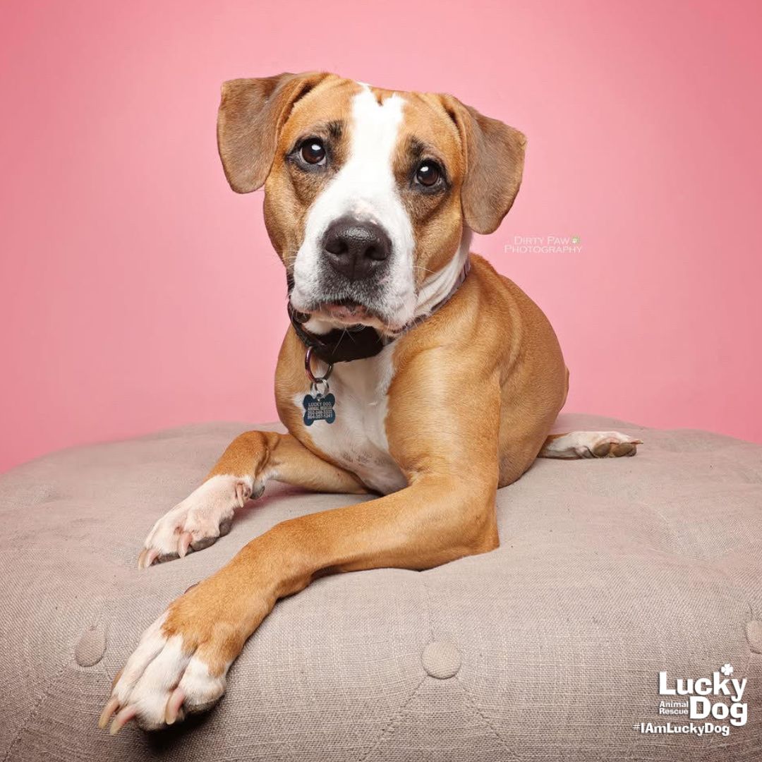 Please contact Paul Slebzak (pauls@luckydoganimalrescue.org) for more information about this pet.Sweet girl seeking her happily ever after! ESTELLA NEEDS A FOREVER HOME!! Name: Estella Best Guess for Breed: Hound and Terrier mix Best Guess for Age: 9 years as of July 2024 SEX: Female Approximate Weight: 56 lbs Gets Along With: Estella would prefer a home where she is the princess of the castle without any other dogs to share in her family’s attention. She may allow a cat to share her castle, but it needs to be a wise one. Estella currently lives with a cat, and has lived with cats before; if she does chase a cat it’s only to play! Her feline companion would need to be savvy to canine ways. We are happy to discuss integration techniques with any potential adopters! Currently Living at: DC area foster home All about Estella: Princess Estella graced Lucky Dog with her presence in 2020 and quickly found a family to care for her. For the past four years she has been in a loving home. Though she did nothing wrong, her family’s situation changed so she is looking for a new family, and a new chapter in her story! She loves to hold court in her home, and will even retire to the royal bedroom (crate) if she must! She is happiest when she can lavish affection on her family, it warms her heart to love and be loved. She feels protective of her family and will do all she can to keep them safe; sometime she gets confused and confronts invited guests, so her foster is helping her learn how to be a more welcoming host. She revels in her romps outside; although she is a “mature” princess you would never guess it from her sprightly pace and joy in touring the countryside. She takes kindly to the leash and enjoys a (possibly undignified) roll in the grass! She likes to be undisturbed in her adventures, so doesn’t always take kindly to fellow canine travelers; she looks forward to finding a family that can help make those encounters more positive! If you give this lovely lady a chance, she promises loyal companionship for all her days in return. Are you Estella’s soft landing and fresh start? Is she your new walking buddy? Lucky Dog cannot guarantee any dog is housebroken. All of our dogs are working on their crate training. TO ADOPT: The adoption fee for this dog is $375, which includes the cost of routine vetting, including vaccinations and spay/neuter. If you are interested in adopting, please complete the Adoption Questionnaire online at bit.ly/adoptaluckydog . Lucky Dog Animal Rescue does our best to provide accurate information about the dogs we have for adoption. That said, we cannot make any guarantees about age, breed or temperament. Thank you for contacting Lucky Dog Animal Rescue and helping to save a life! Please visit us online at www.luckydoganimalrescue.org . BE A FOSTER!!! Fosters make it possible for Lucky Dog Animal Rescue to save and care for homeless and abandoned dogs! To learn about fostering, please contact fostering@luckydoganimalrescue.org! BE A SPONSOR!!!! Sponsors help Lucky Dog support the many dogs we save. To learn more about sponsorship, please contact info@luckydoganimalrescue.org !