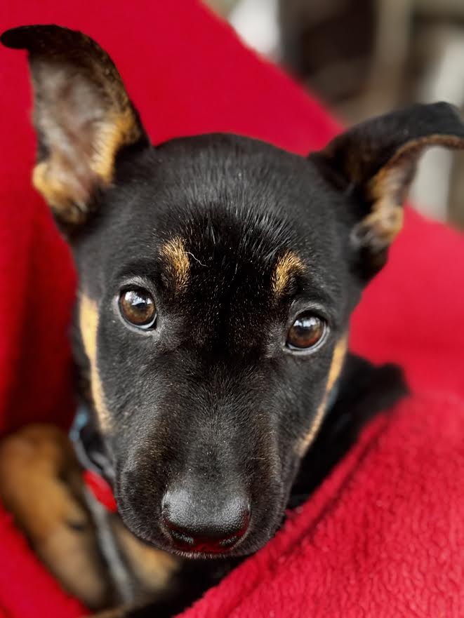 Ethan IS AVAILABLE (updated 12-03-2025). To meet any of our dogs, complete our online adoption application on our website: http://www.coastalgsr.org/dogs/ethan The six “E litter” puppies were found in a shelter drop box. They were very dirty but appeared to be surprisingly healthy. There are five boys: Echo, Easy, Elton, Ethan, and Everest, and one girl: Emma. They are 3 months old and weigh around 15 pounds. Emma and Elton are light blond; the others are black and tan. They are German Shepherd mixes but how much GSD, we aren’t sure. They are in a foster home where they have settled in nicely and their foster mom is learning more about each of their personalities. Ethan’s ears are fighting to stand up. He is the most mellow of the boys and is a little lovebug. The minimum adoption donation is $375 for adults and $500 for puppies. This helps cover vet care, boarding fees, and other expenses. All dogs are spayed/neutered, vaccinated, and microchipped.