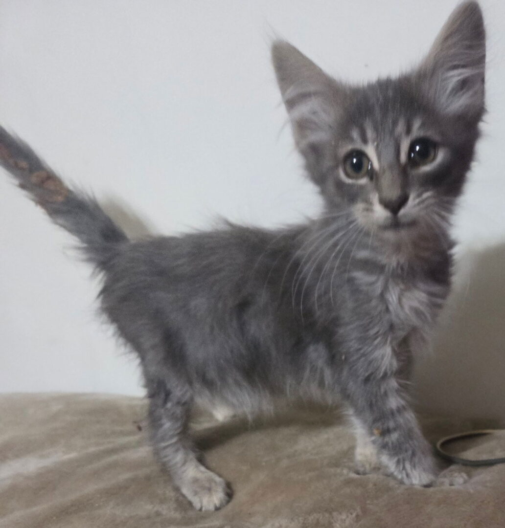 Meet the adorable Eva! This little bundle of joy is just 3 months old and weighs in at a tiny 1 pound! Eva is a Domestic Medium Hair with the softest gray fur that’ll have you petting her for hours. Just imagine the joy she’ll bring to your life! Eva is a social butterfly! She gets along fabulously with cats, dogs, and even children! This means your home could be filled with laughter and playful antics, as she explores every nook and cranny. However, it's important to note that Eva is still learning the ropes and isn't fully trained yet. Think of it as an exciting opportunity to bond and teach her all the fun tricks! Though she’s not spayed yet, this little lady is ready to find her forever home. Are you ready to open your heart to this charming kitten? Want to meet this precious girl in person? Visit the shelter where she’s waiting with paws crossed just for you! Adoption is the new adventure—ready to roll?