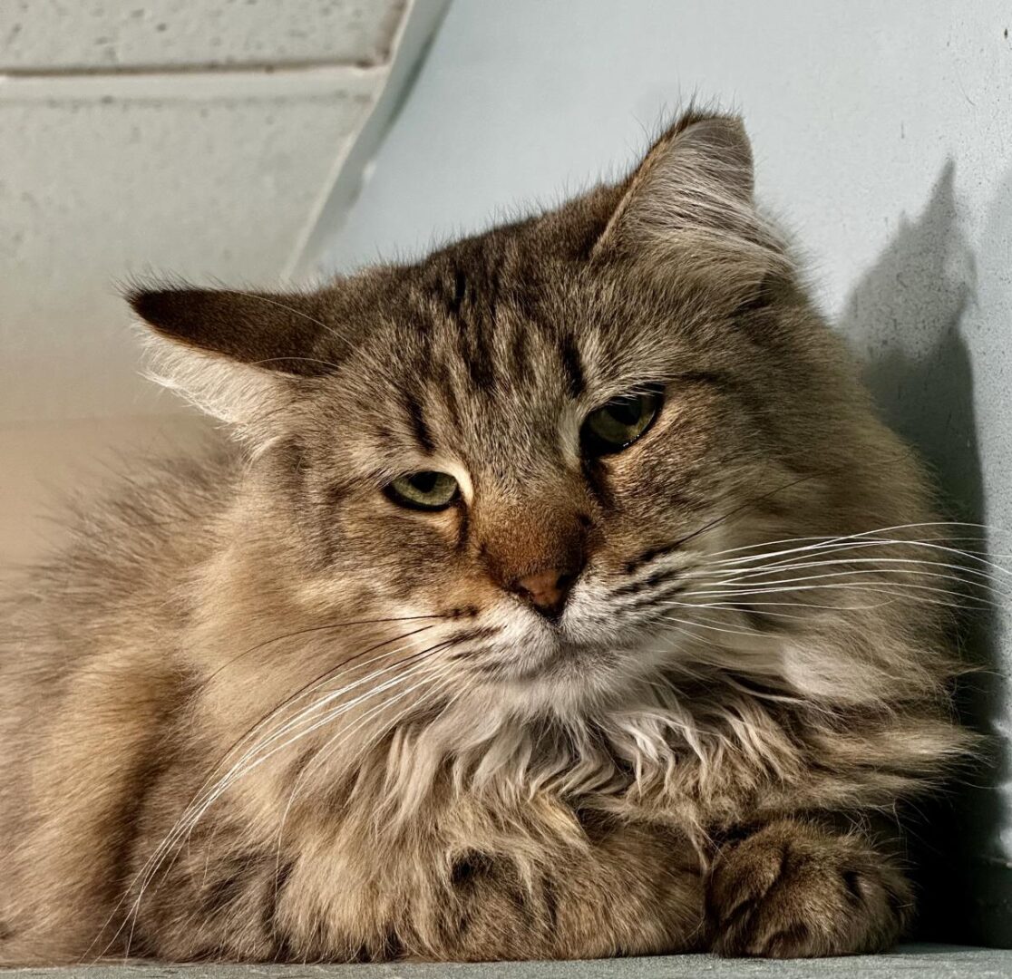 DOB: 6/21/2021 | Ever feel like you’re being watched? It’s probably Evie Spring, a curious, quiet girl with a knack for hiding in the strangest places and keeping a close eye on her humans. A master of hide-and-seek, she loves exploring her surroundings, finding cozy hidey-holes, and gazing out the window. While she’s on the shy side and may never be a lap cat, Evie is full of gentle charm and enjoys the simple pleasures: wet food treats, sleeping up high, and sipping from her kitty water fountain. She would thrive in a small, calm home, ideally with someone who works from home or is around often, and with a few friendly feline companions. She is good with kids over 12, but hasn’t met a dog. Evie is a sweet, sensitive soul just waiting to find her forever family.| Health information: All cats and kittens are spayed and neutered, preventatively dewormed, and microchipped. In addition, they are FeLV/FIV tested and vaccinated as appropriate by age. | Interested in adopting? Apply to meet and adopt. | How to apply: please fill out application at https://www.savingonelife.org/adopt/apply/
