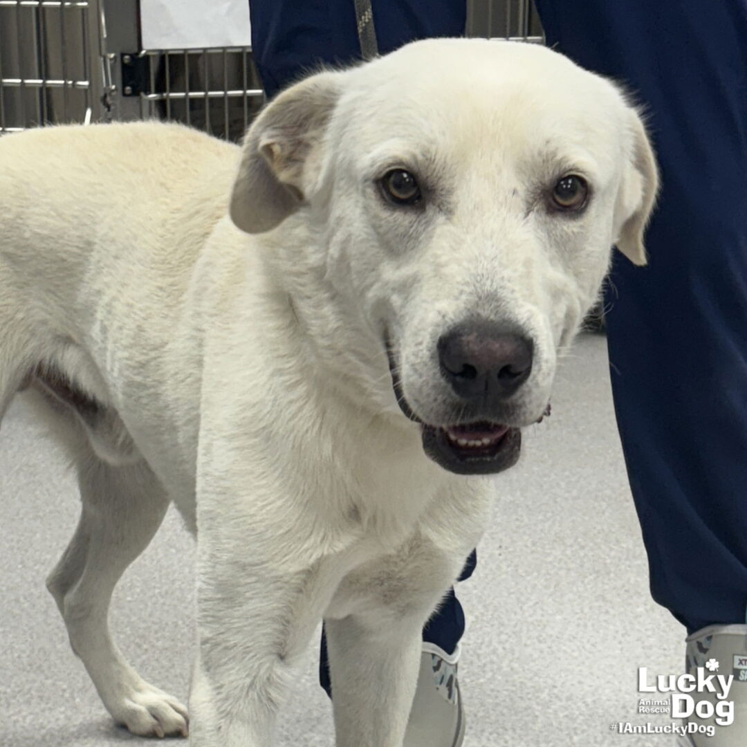 Please contact Rebecca Stein (RebeccaS@luckydoganimalrescue.org) for more information about this pet.sweet boy ISO fresh start and love! FALCOR NEEDS A FOSTER OR FOREVER HOME!!!! Name: Falcor Best Guess for Breed: Lab mix Best Guess for Age: 2 years as of December 2024 SEX: Male Approximate Weight: 62 lbs Gets Along With: Falcor does well with other dogs. We haven’t seen him with kids or cats but he can be tested if you have them. Currently Living at: Lucky Dog’s South Carolina rescue campus from a Puerto Rico shelter; needs a foster or forever home in the DC area to get up here and into a home! Falcor is Looking For: His forever home! He flew out of the Neverending Story to get his own human home, and was a bit confused when he landed on a street in Puerto Rico instead. was thrilled to be rescued from the streets and now can’t wait to come to the DC area and get his own humans. Long sniffy walks, romps in parks, all the adventures – yes, please! Quality kibble, a cushy dog bed, and dog toys sound great too but you know what he wants most of all? To know he’s safe and loved and under his own roof. In exchange, he has so much to offer – adoring gazes, tail wags, all the affection he’s stockpiling in the shelter, and loyal companionship for all his days. What do you say? Are you the one who will help continue Falcor’s story? What My Foster Says About Me: We will update this once he has arrived in the DC area and spent some time with his foster. Lucky Dog cannot guarantee any dog is housebroken. All of our dogs are working on their crate training. TO ADOPT: The adoption fee for this dog is $460, which includes the cost of routine vetting, including vaccinations and spay/neuter. If you are interested in adopting, please complete the Adoption Questionnaire online at bit.ly/adoptaluckydog . Lucky Dog Animal Rescue does our best to provide accurate information about the dogs we have for adoption. That said, we cannot make any guarantees about age, breed or temperament. Thank you for contacting Lucky Dog Animal Rescue and helping to save a life! Please visit us online at www.luckydoganimalrescue.org . BE A FOSTER!!! Fosters make it possible for Lucky Dog Animal Rescue to save and care for homeless and abandoned dogs! To learn about fostering, please contact fostering@luckydoganimalrescue.org! BE A SPONSOR!!!! Sponsors help Lucky Dog support the many dogs we save. To learn more about sponsorship, please contact info@luckydoganimalrescue.org !