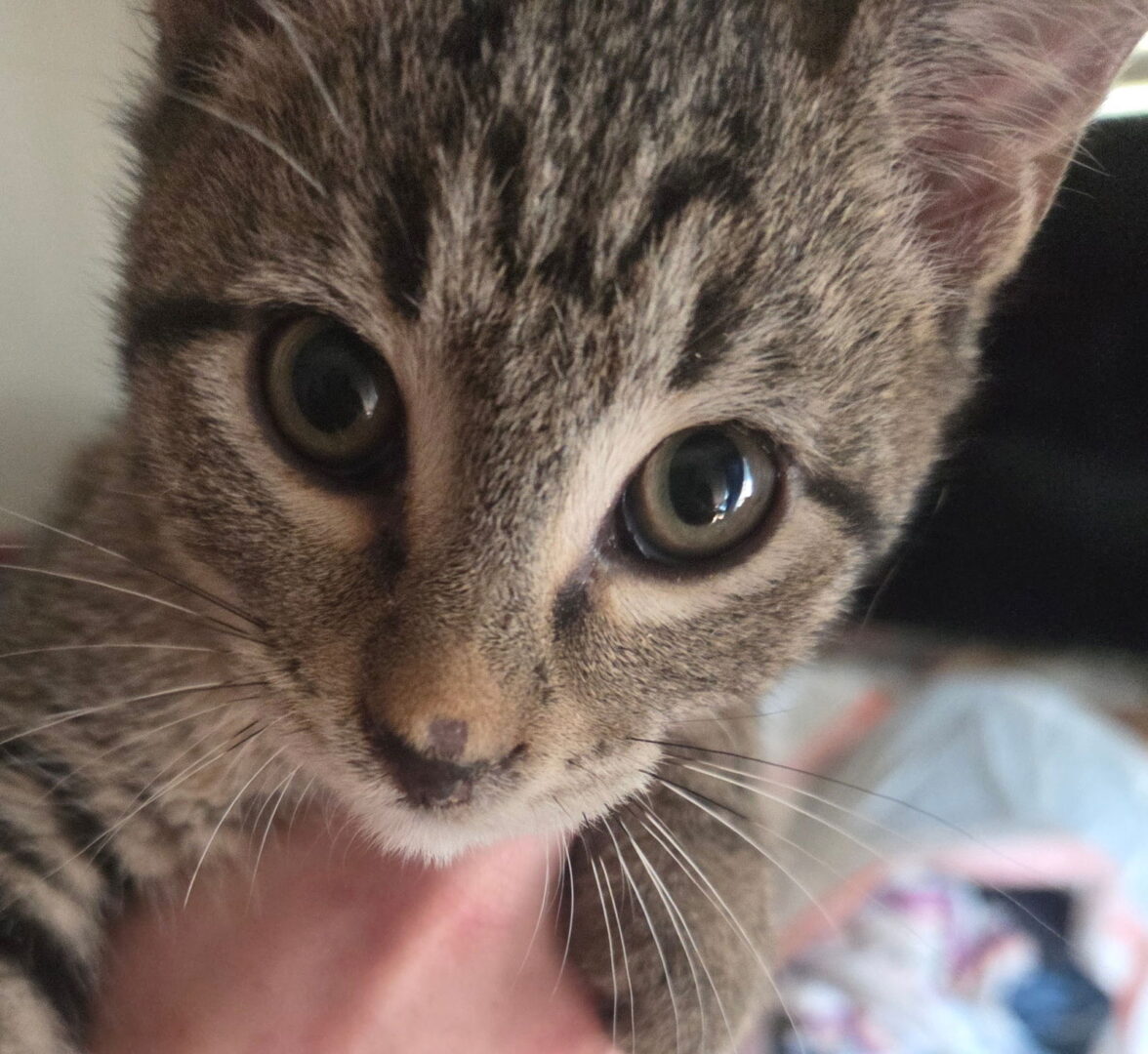 Fang is a little survivor with a lot of heart. At just 4 months old, this charming brown tabby may be a bit on the shy side, but once he feels safe and loved, his playful and affectionate side really shines through. Fang’s journey began under a house that was about to be demolished, but thanks to Kitty’s Kitten Rescue, this sweet boy is now safe, sound, and ready to find a forever home where he can finally show just how special he is. Though Fang is still learning to trust the world around him, he’s already proven himself to be one smart and curious kitty. He’s playful and loves a good game—whether it’s chasing a ball, pouncing on a toy, or just observing his surroundings with his wide, inquisitive eyes. It’s clear that he’s not only a survivor, but a quick learner who’s ready to bond with the right family. Fang might take a little time to open up, but with patience and love, you’ll soon discover just how sweet and affectionate this little guy can be. Whether you’re looking for a companion to share quiet moments with or a playful partner for fun-filled adventures, Fang has all the potential to be the perfect addition to your family. Could you be the one to give Fang the forever home he deserves? Come meet him today and let this little adventurer show you just how much love he has to give!