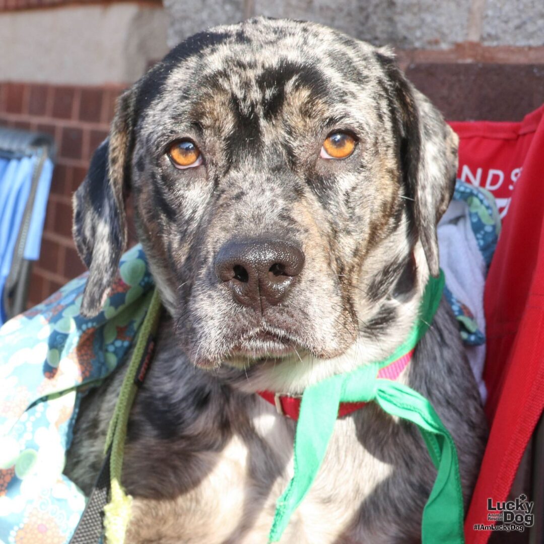Please contact Anna Waldman (anna.waldman@luckydoganimalrescue.org) for more information about this pet.pretty spotted girl deserving of all the love! FARRAH NEEDS A FOREVER HOME!!!! Name: Farrah Best Guess for Breed: Catahoula/Retriever Mix Best Guess for Age: 1.5 years as of November 2025 SEX: Female Approximate Weight: 50 lbs as of November 2025 Gets Along With: Other dogs! We haven’t seen them with cats or kids but we are happy to discuss integration techniques with any potential adopters! Currently Living at: DC area foster home Special Adoption Considerations: Because Farrah is shy, she needs to go to a home with a confident, welcoming resident dog who will show her the ropes. Farrah is Looking For: This beautiful, freckled beauty can’t wait to find her forever home. She a sweetheart who wants nothing more than to love and be loved. Sniffy walks, romps in parks, all the adventures her new humans can dream up – oh yes, those too! But most of all, she wants to know where she belongs, to always be safe and loved. In exchange, she has so many adoring gazes, so much loyalty to offer. She may even let you count her spots! What do you say? Is Farrah who you have been looking for? What My Foster Says About Me: Farrah is a really sweet, gentle dog. Distinctive looking too! She’s a love sponge for pets and belly rubs. Adopt her if you want the dog on the sofa, but not your friends! She LOVES to curl up in a soft place and stay there all day – and her in-home manners are impeccable (other than the aforementioned sofa surfing). No barking or chewing observed yet. She is, paradoxically, also a super-athlete. She has gone on runs, though not daily. She is still pretty shy with new people but is improving every day and she is loyal to her people. Lucky Dog cannot guarantee any dog is housebroken. All of our dogs are working on their crate training. TO ADOPT: The adoption fee for this dog is $460, which includes the cost of routine vetting, including vaccinations and spay/neuter. If you are interested in adopting, please complete the Adoption Questionnaire online at bit.ly/adoptaluckydog . Lucky Dog Animal Rescue does our best to provide accurate information about the dogs we have for adoption. That said, we cannot make any guarantees about age, breed or temperament. Thank you for contacting Lucky Dog Animal Rescue and helping to save a life! Please visit us online at www.luckydoganimalrescue.org . BE A FOSTER!!! Fosters make it possible for Lucky Dog Animal Rescue to save and care for homeless and abandoned dogs! To learn about fostering, please contact fostering@luckydoganimalrescue.org! BE A SPONSOR!!!! Sponsors help Lucky Dog support the many dogs we save. To learn more about sponsorship, please contact info@luckydoganimalrescue.org !