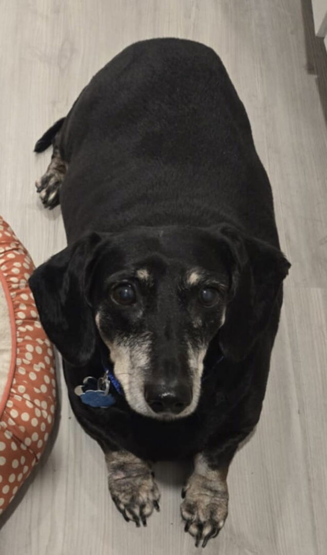 See Fifi Marcella’s HomepageGo to our official websiteYou can fill out an adoption application online on our official website.vetting incomplete FiFi is a real sweetheart! Currently though, her stomach is bigger than her heart. We are working hard with measured meals and walks to help her get her girlish figure back. She loves following me from room to room which also helps her get her steps in. She sleeps happily on a dog bed on the floor next to my side of the bed. She is very sweet to our 2-year-old wild toddler. She gets along well with other male and female dachshund mixes. She does all her pottying outside like a good girl. She really enjoys her walks but you do have to go kind of slow. She gets winded. We do three short walks about 10 minutes each for now. Once she gets some of those pounds off, her endurance will increase.