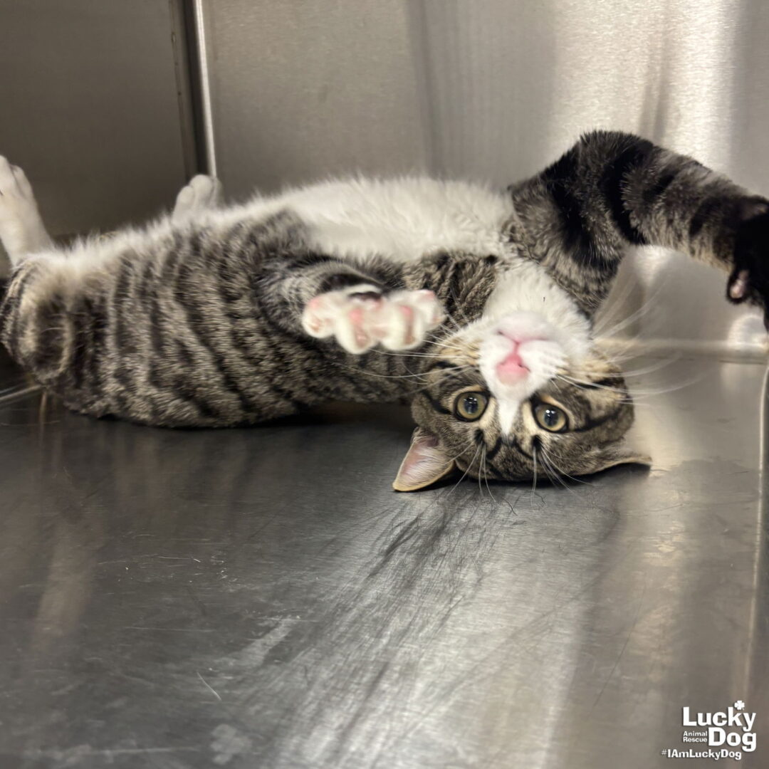 Please contact Lauren McCarty (laurenmc@luckydoganimalrescue.org) for more information about this pet.Sweet Fig is looking for a forever home!FIG NEEDS A FOREVER HOME! Name: Fig Best Guess for Breed: Domestic Short Hair Age: 8 months old as of 1/15/25 – Estimated DOB: 5/15/24 SEX: male Approximate Weight: 6lbs 11 oz Coloring: Brown tabby with white accents Type of Hair: Short Lived with: Ozzy and Fig Gets Along With: Because of his young age, Fig will likely get along with other cats, dogs and kids with an acclimation period. We’re happy to help with tips and tricks! I live with a dog in foster! Currently Living at: Shelter…coming to DC area soon I am Looking For: My loving forever family! Hi! I’m Fig, and I am a cute little kitten! I won’t ask for much- just some love, cuddles and lots of toys so I can run and play and be my kitten self. What My Foster Says About Me: coming soon! Kitten Vetting Requirements: Your kitten may not be fully vaccinated upon adoption. You will be responsible for providing whatever remaining vaccines are needed to complete the kitten vaccine series. TO ADOPT: The adoption fee for adult cats is $200 ($350 for two cats adopted together). The adoption fee for a kitten (under 7 months old) is $220 ($380 for two kittens adopted together).If you are interested in adopting, please complete the Adoption Questionnaire online at bit.ly/adoptaluckycat. Lucky Dog Animal Rescue does our best to provide accurate information about the cats we have for adoption. That said, we cannot make any guarantees about age, breed or temperament. Thank you for contacting Lucky Dog Animal Rescue and helping to save a life! Please visit us online at www.luckydoganimalrescue.org . BE A FOSTER!!! Fosters make it possible for Lucky Dog Animal Rescue to save and care for homeless and abandoned dogs! To learn about fostering, please contact fostering@luckydoganimalrescue.org BE A SPONSOR!!!! Sponsors help Lucky Dog support the many dogs we save. To learn more about sponsorship, please contact info@luckydoganimalrescue.org !