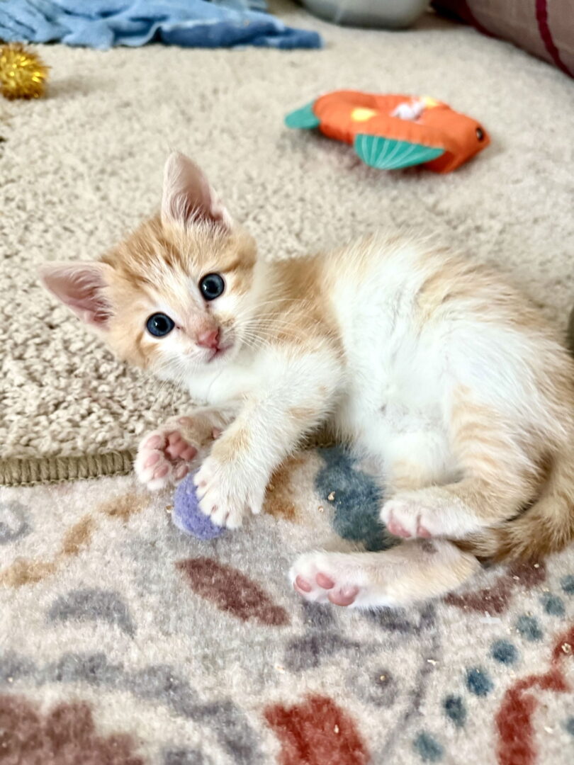 Fig Newton =^..^=, DSH Orange Tabby and White, Male, DOB 9/26/2025 https://cataroundtownproject.org/adoption-application/