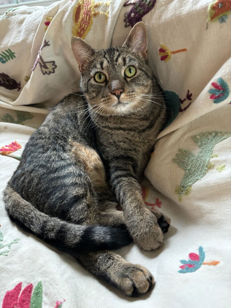 See Finch’s HomepageGo to our official websiteYou can fill out an adoption application online on our official website.Meet Finch! Finch came into the rescue with Sparrow and their four kittens. Finch and Sparrow were found living outside and were brought to the rescue by a kind family who noticed they were wearing old collars that had begun to become embedded in their necks. We believe they were previously house cats and were left behind when their owners moved away. Finch and Sparrow are now ready to find their family. These two are truly a joy and will be a wonderful addition to any home. They are gentle with children and do well with other cats. They are two of the most loving and mellow cats we have ever fostered. Finch is confident, friendly and affectionate. He has never met a stranger and is quick to jump into a lap. He loves to sit in his favorite chair and watch birds and squirrels out the window. He also loves crinkly toys, the laser pointer, cuddling up to watch TV, and his girlfriend. Finch is deeply in love with Sparrow and follows her everywhere! He grooms her, lets her eat first, and is happiest when they are together. Finch is a gentle giant and a great companion. Sparrow is a gorgeous and vocal little lady. She chirps and chats all day long! She follows her foster parents around the house (and Finch is always right behind her). Sparrow loves to bask in attention from her people and is usually found lounging in her window seat when no one is available to pet her. She never misses a meal and will certainly let everyone know when she’s hungry. Sparrow is so sweet, well-mannered and loving. She is a quirky girl who will keep her family laughing with her chatting and noises. Finch and Sparrow’s adoption fee of $75 covers: negative tests for Feline Leukemia (FeLV) and Feline Immunodeficiency Virus (FIV), spay and neuter surgery, FVRCP, feline leukemia, and Rabies vaccines, routine de-worming, topical flea protection and microchips. If you are the perfect family for this special pair, please visit www.rosesrescue.net to complete the online adoption application. Thank you for considering adoption – our adoptable cats can't wait to meet you. https://www.rosesrescue.net/animals/detail?AnimalID=20471442 Click here to watch a video of Finch.