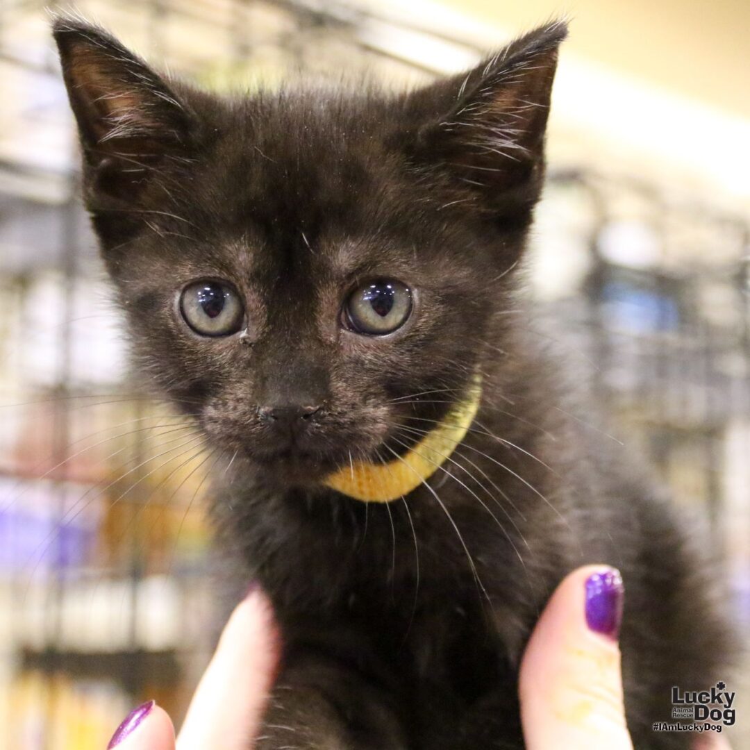 Please contact Lauren McCarty (laurenmc@luckydoganimalrescue.org) for more information about this pet.Cute kitten looking for a forever home! FIRST NEEDS A FOREVER HOME!!!! Name: First Best Guess for Breed: Domestic Short Hair Best Guess for Age: 3 months as of 10/18/25 DOB 7/18/25 SEX: male Approximate Weight: 1lbs 5 oz Coloring: black Type of Hair: Short Gets Along With: Because of his young age, First will likely get along with other cats, dogs and kids with an acclimation period. We’re happy to help with tips and tricks! Currently Living at: foster in the DC area Litter: First, Favorite, Forrest, Frisky I am Looking For: My loving forever family! Hi! I’m First, and I am a cute little kitten! I won’t ask for much- just some love, cuddles and lots of toys so I can run and play and be my kitten self. What My Foster Says About Me: Coming soon! Kitten Vetting Requirements : Your kitten may not be fully vaccinated upon adoption. You will be responsible for providing whatever remaining vaccines are needed to complete the kitten vaccine series. TO ADOPT: The adoption fee for this kitten is $220 ($380 for two cats or kittens adopted together), which includes the cost of routine vetting. If you are interested in adopting, please complete the Adoption Questionnaire online at bit.ly/adoptaluckycat Lucky Dog Animal Rescue does our best to provide accurate information about the cats we have for adoption. That said, we cannot make any guarantees about age, breed or temperament. Thank you for contacting Lucky Dog Animal Rescue and helping to save a life! Please visit us online at www.luckydoganimalrescue.org . BE A FOSTER!!! Fosters make it possible for Lucky Dog Animal Rescue to save and care for homeless and abandoned dogs! To learn about fostering, please contact fostering@luckydoganimalrescue.org BE A SPONSOR!!!! Sponsors help Lucky Dog support the many dogs we save. To learn more about sponsorship, please contact info@luckydoganimalrescue.org !