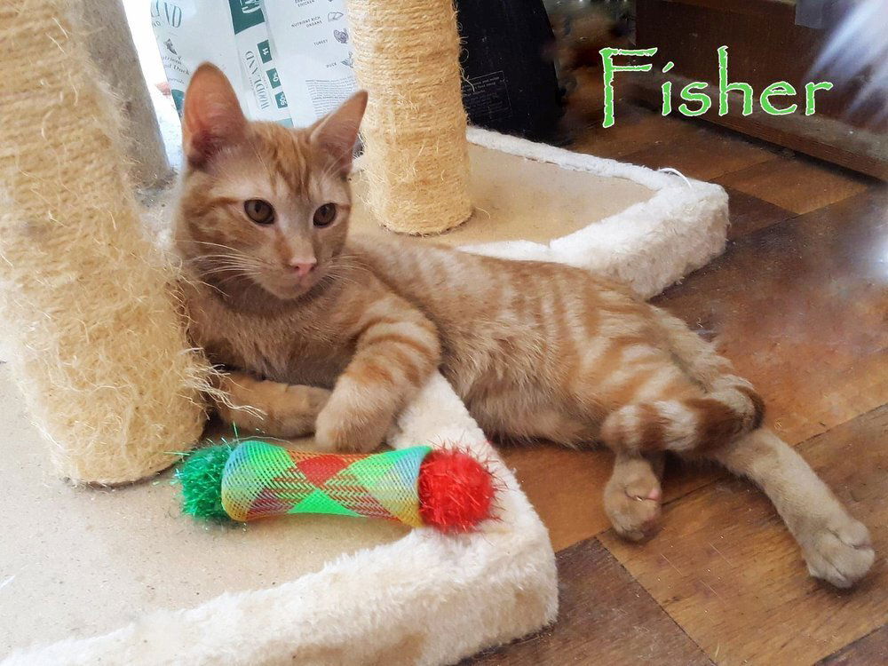 UPDATE: 3.3.24 Fisher was a bit of a loner who now has been seeking out more affection. He will greet you at the door. Fisher was once bonded with 2 friends, but isn't anymore and can be adopted by himself. He is a sweetheart that at times struggles with self-esteem. He has been waiting on his forever home since he was an 8 week old kitten, found dumped in a trash heap with his siblings (all adopted now) at a county dump. Please help him find a home. BFFs Fisher, Gar"Bonzo," & Watson – A Tale of 3 FriendsEvery week we get many requests for Fisher, an orange tabby that came to us with his 5 siblings last summer. Fisher and his family were dumped at the dump and ended up at a high kill shelter – a double whammy. Forgotten Felines pulled Fisher and his siblings and all were adopted, except Fisher. “So…if you are getting a lot of calls for Fisher, what’s the problem?” you ask. Well…Fisher has always been a bit of a loner and always sat apart from his siblings. He never wanted to play with them, he seemed to be a thinker type kinda guy, quiet. He never seemed to have any self esteem or real identity.Last summer we got in an entire family of orange cats that set up “house” in an office parking lot, right on the side of I-29 – remember? Gar”Bonzo” was the dad of that litter. Bonzo is a large orange tabby with white paws with an easy-going personality, though he didn’t come to us that way, he is TOTALLY a smooshie-guy now.Bonzo took an interest in Fisher and cleaned him, slept with him, and even played with toys with him. Keep in mind, Bonzo never even knew what a toy was…but he did this for Fisher. He seemed to know what Fisher needed and saw the emptiness in him…and filled it. Bonzo let Fisher know that he was okay and everything was okay. He mentored him in a way. This big ol’ cat from the streets took Fisher under his wing and became a big part of Fisher’s life. “Okay then, so adopt them together.”Last summer I received a call from the high kill shelter to pull some cats bc they would be euthanized. We took in the cats and when I asked if there were any more that needed out, the reply was, “We have one, but he will be put down bc he is feral.” I said I would take him. (Lots of times cats are not feral, just terrified from being in a big, loud, scary shelter, wondering what their fate will be.) I was told, “No, you don’t want him. He really is feral. We will put him down.” “No I want him.” I replied. Thinking, even a barn home is better than death.Watson came to us the following day, a day before he was slated for death. This big gray and white guy just stayed in his carrier in the crate and I barely saw him for the first month he was with us. He came out of his carrier at night to eat and that was about it. Sometimes when I would come into the room late at night, I would see him lounging on top of his carrier and he would quickly run inside again, escaping interaction with me. I never heard a growl or a hiss, ever. Hmmm…I thought, feral, huh?After Watson settled in, he was fully vetted and the door was opened on his crate. He could now come out and meet everyone he had been looking at for awhile, or stay in his crate if he chose. The decision was his. He came out and within a week or so, became best buds with Bonzo – after all, they had a lot in common. These are 2 guys that most would’ve given up on and dismissed as unfriendly cats, without taking the time to get to know them. Soon, Watson began cleaning and grooming little Fisher, too, eating with him, sleeping with him, and bonding with him.Now the world seemed to shine down on these three friends and all was happy and good, but they still need to complete their story. This is where you come in.These 3 friends are not traditional lap cats. Bonzo and Watson can be pet but do not like to be picked up – that’s okay. They often look out the French doors from the playroom and let me know when I am late to give them their canned food breakfast. They rub up against my legs when I come into the room. They can be pet and love affection. They are sweet cats who deserved to live. Once in a quiet home, they will most-likely bloom with a person they can trust.We are introducing these 3 guys, who have been through so much, to be part of a family. A family that is loving and understanding and patient and lets them adapt into their new home with love and patience. And so….I introduce to you….Gar”Bonzo” and Watson and Fisher. Three friends together. All fully vetted and microchipped, looking to add another chapter to their success story. (A deep discount will apply when adopting.)Please share with friends and family! GoodMews22@aol.com