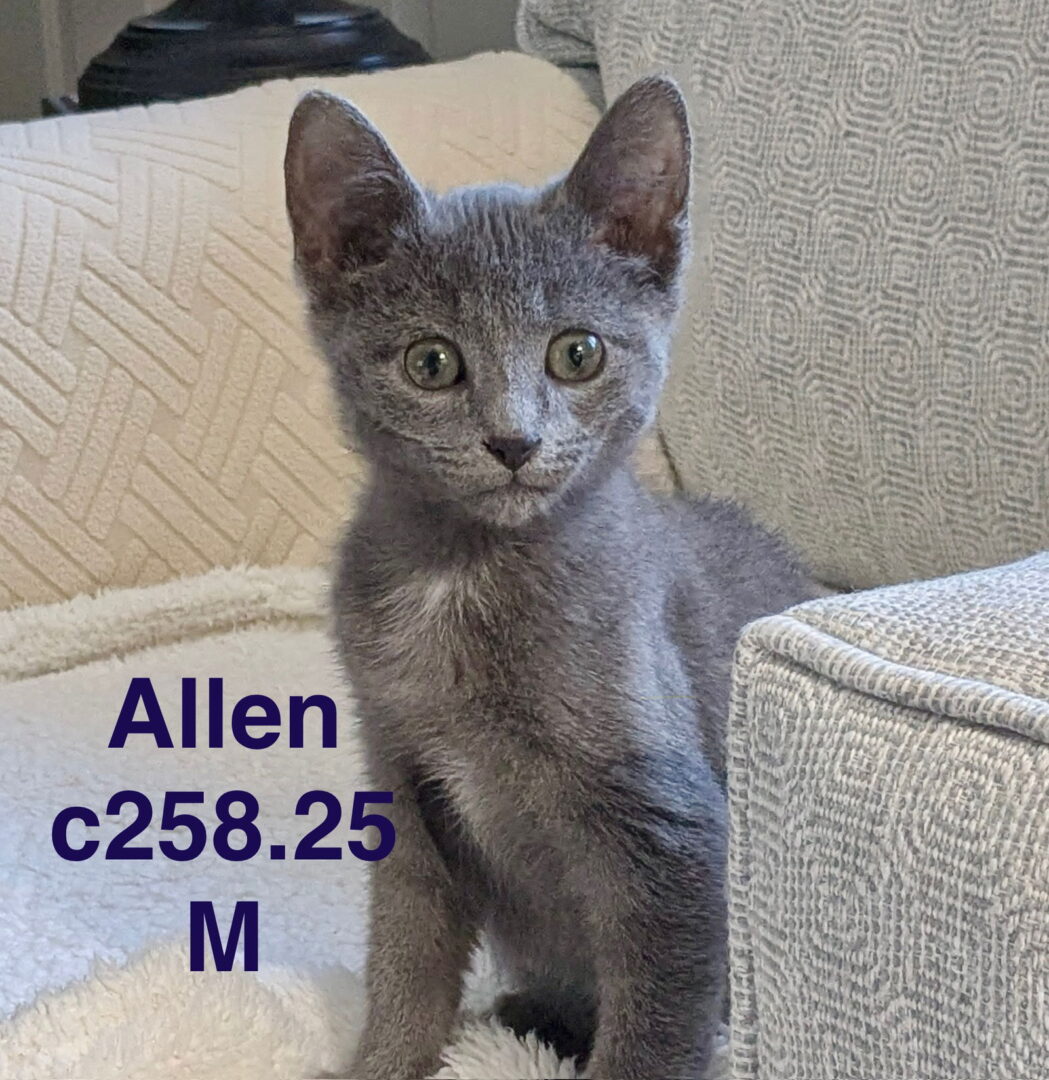 Allen is a Male Gray with White DSH Kitten Generally kitten season blossoms in June with approximately 60 in foster. By August and September, we peak with approximately 90 kittens. We have several dedicated volunteers who accept applications for kittens and try to match them up with foster kittens. We then set up meet and greets for fosters and families prior to the kittens being ready for adoption. All of our kittens are adopted after they are 3 months old AND they are spayed/neutered. All of the medical care and surgery expenses are covered by donations to Volunteers For Animals. If you are interested in a kitten, we suggest you email us so that we can begin the process of matching for you. This is an involved process so please do not call the Shelter. Your email will be forwarded to our dedicated volunteers who will then send you details including an adoption application. You can Contact Us through the website to start the process. We are all volunteers and our dedicated kitten volunteers are diligent about responding to all inquiries. We appreciate your patience. Here is the adoption process: To adopt an animal you must complete an application and be approved. There is a $60 fee for any animal which needs to be cash or a check – NO CREDIT CARDS. If the animal is not spayed or neutered, there is a $35 deposit which will be returned upon proof of surgery. All dogs must be licensed before leaving the Shelter. Please note that public offices that issue dog licenses are not open on Saturdays and Sundays. All cats must leave in a carrier. Thank you for considering a homeless animal.