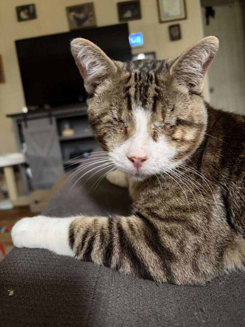 HI! My name is Francis, and I am about 8 months old as of April 2026. I am a very special boy, but do not for a second think of me as “less than.“ In spite of some adversities in my young life, I am resilient and view the world as a safe and loving place. As a young kitten, I was abandoned on someone’s porch. Hopefully the person who abandoned me knew that a kind lady lived there, and she immediately took me in and saw that I had terribly infected eyes and got me medical care right away. Unfortunately, my eyes were so infected that they had no vision left and needed to be removed. I never thought “Whoa is me“ but instead embraced the life I have and all the good things that have come my way. I pride myself on my sunny personality. I can do all the things that a kitty needs to do: eat my dinner, wrestle with my foster brothers and sisters, use the litter box, and best of all sit on my foster mom’s lap and purr and give her kisses. If you are looking for a special kitty who only needs to be loved and have someone to love, I am your boy. Please submit our no-obligation Adoption Application to set up a meet and greet or to adopt me: https://forgottencats.org/adoption-application/. Thank you! Love, Francis. (Foster: Ronnie E.)
