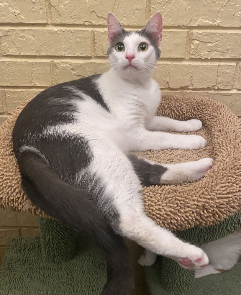 Frazier is very sweet & playful. He is. Pair with brother Niles. He did test FIV+ as a kitten but has not had any health issues. He loves toys, cat trees, and being petted.