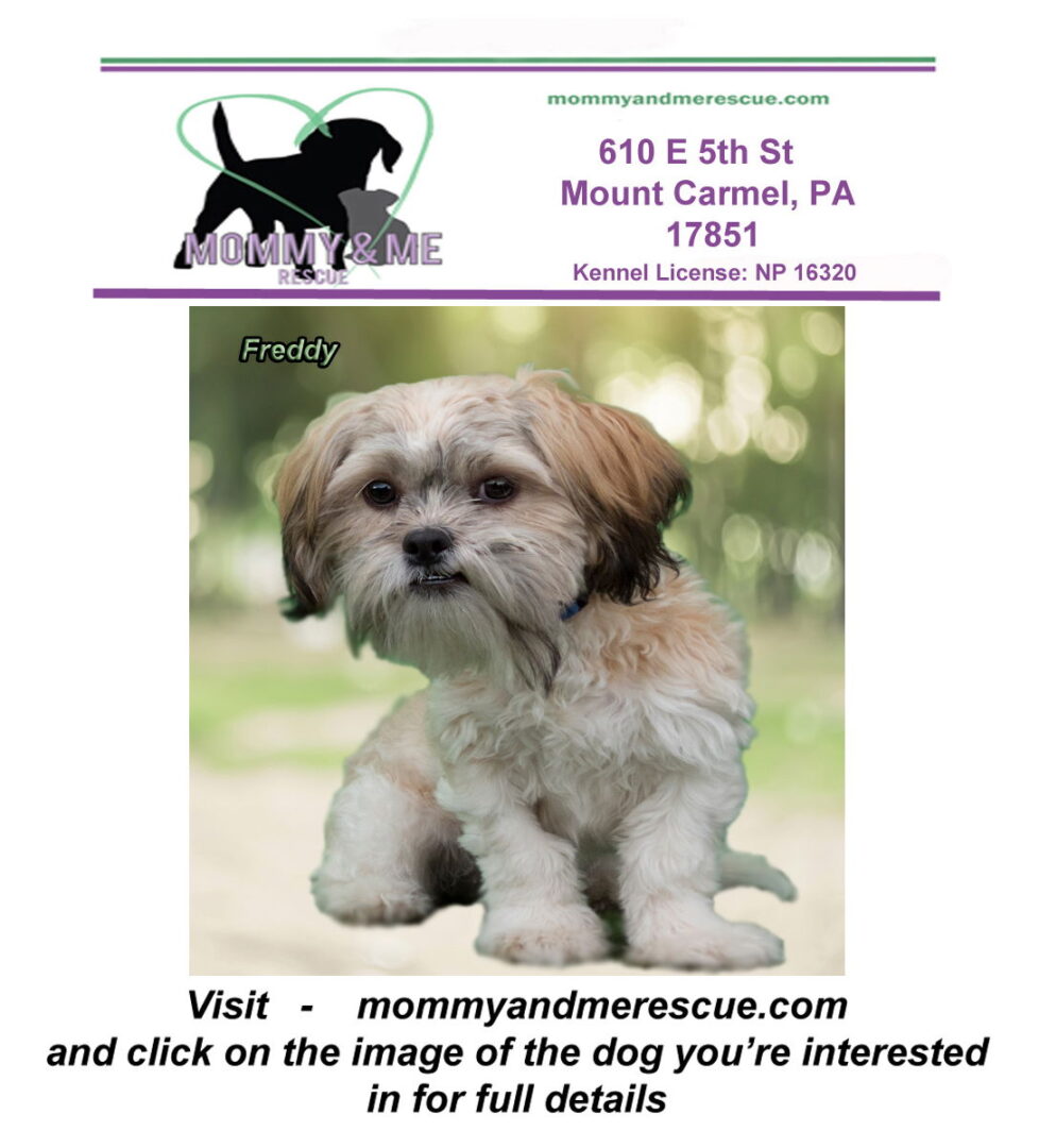 See Freddy’s HomepageGo to our official websiteYou can fill out an adoption application online on our official website.All adopters are required to meet at our rescue center in Mt Carmel, PA (no exceptions). Please EMAIL all questions to rescue.me.pa@gmail.com Please fill out an application here > https://mommyandmerescue.com/adoption-application/ and give your vet clinic permission to speak with us. Spayed/Neutered, UTD on vaccines, Chipped Adoption fee 400.00 You must submit the application and be approved prior to meeting one of our dogs. If you have questions please EMAIL rescue.me.pa@gmail.com or visit mommyandmerescue.com Kennel License: NP 16320 Freddy Yorkie / Shih Tzu Male DOB: 8/17/24 Weight: 9 pounds Freddy is a crazy fun little guy and is full of energy. He loves running and playing. He enjoys going for walks. Freddy also likes to cuddle with his person. He is good with older kids and other dogs. Freddy is mostly house-trained but could us a little more work. He does well in a crate. License: NP 16320 PLEASE NOTE- we do not refund deposits if you change your mind. We are a PA licensed, 501C3 non-profit rescue. Visit our page for more information http://www.mommyandmerescue.com/