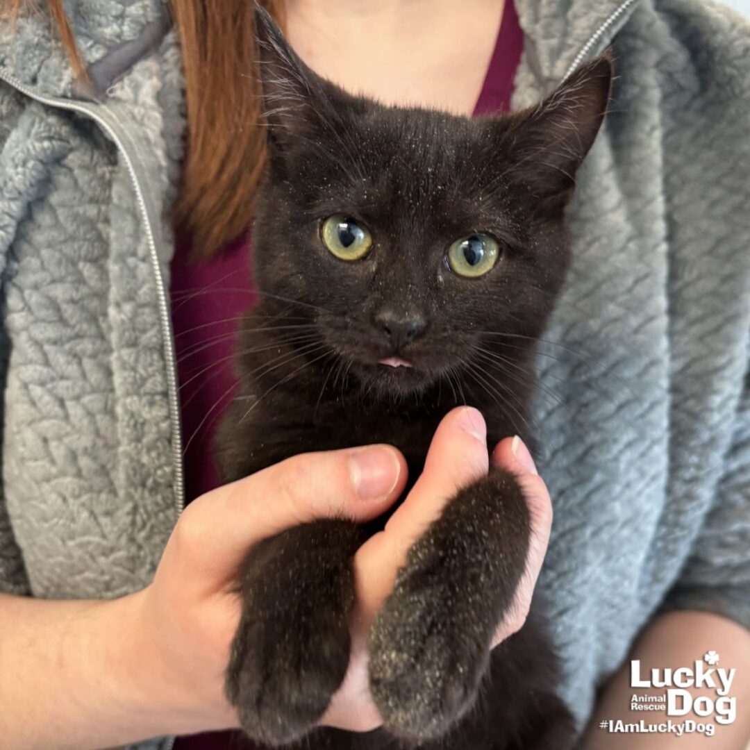 Please contact Lauren McCarty (laurenmc@luckydoganimalrescue.org) for more information about this pet.Fresca is Ready to Freshen Up Your Home!FRESCA NEEDS A FOREVER HOME! Name: Fresca Best Guess for Breed: Domestic Short Hair Age: 14 weeks as of 2/24/26 Estimated DOB: 11/14/25 SEX: Female Approximate Weight: 2lbs 5oz as of 1/24/26 Coloring: Black Type of Hair: short Gets Along With: Because of her young age, Fresca will likely get along with other cats, dogs and kids with an acclimation period. He has met cats and kids and done well! We’re happy to help with tips and tricks! Litter: Fiesta, Fresca, Fritz, Fajita Currently Living at: Foster in the DC area I am Looking For: My loving forever family! Hi! I’m Fresca, and I am a cute little kitten! I won’t ask for much- just some love, cuddles and lots of toys so I can run and play and be my kitten self. What my Foster Says About Me: Coming soon!! Kitten Vetting Requirements: Your kitten may not be fully vaccinated upon adoption. You will be responsible for providing whatever remaining vaccines are needed to complete the kitten vaccine series. TO ADOPT: The adoption fee for adult cats is $200 ($350 for two cats adopted together). The adoption fee for a kitten (under 7 months old) is $220 ($380 for two kittens adopted together).If you are interested in adopting, please complete the Adoption Questionnaire online at bit.ly/adoptaluckycat. Lucky Dog Animal Rescue does our best to provide accurate information about the cats we have for adoption. That said, we cannot make any guarantees about age, breed or temperament. Thank you for contacting Lucky Dog Animal Rescue and helping to save a life! Please visit us online at www.luckydoganimalrescue.org . BE A FOSTER!!! Fosters make it possible for Lucky Dog Animal Rescue to save and care for homeless and abandoned dogs! To learn about fostering, please contact fostering@luckydoganimalrescue.org BE A SPONSOR!!!! Sponsors help Lucky Dog support the many dogs we save. To learn more about sponsorship, please contact info@luckydoganimalrescue.org !