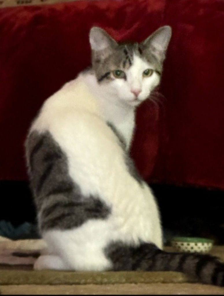 Shorthaired with smooth, beautiful coat. Easy going and laid back, he loves to sleep on cat trees and window ledges. Very social with other cats, he has been raised with his litter mates and would love have feline siblings to grow with. Playful, social and goofy with people, he would be a great family cat.