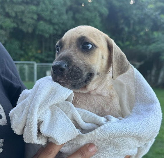 See Frosty’s HomepageGo to our official websiteYou can fill out an adoption application online on our official website.Dec. 11 2025 Frosty is part of a litter that was dumped at Los Machos Beach in Ceiba, PR. They are currently about 8 weeks old. Our best guess is that they will be medium to large adults. They will be ready to fly on Dec. 18.