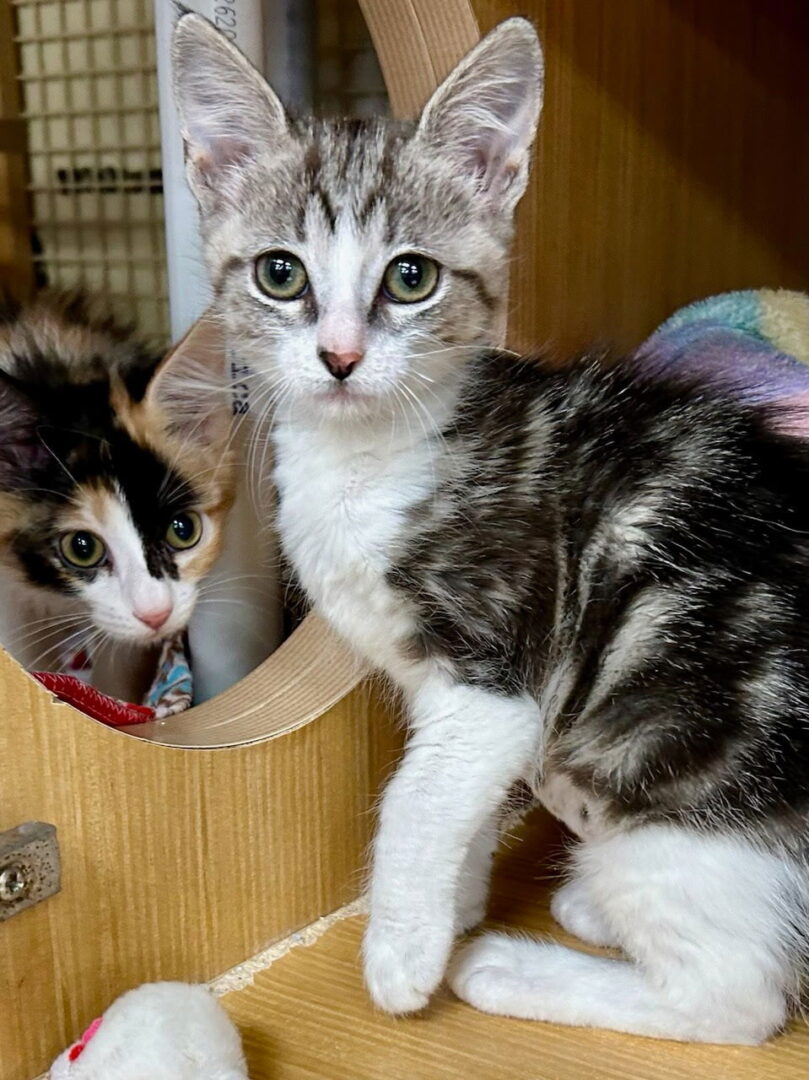 All of our cats are current on vaccines, combo tested (FIV/FELV) , spayed/neutered, microchipped, given rabies vaccine as age appropriate, flea treatment and dewormer as needed Are you dreaming of a sweet companion to brighten your days? Fuzzy may be the perfect match for you! Fuzzy is a charming gray and white tabby kitten, with soulful golden eyes and a heart as gentle as her purrs. She was rescued as s bottle baby from Animal Shelter in Mesquite. Her story began on a scorching afternoon, when she and her sibling were spotted in a risky location out in the countryside, vulnerable to the dangers of wildlife and brought to the shelter. At just 5-6 weeks old Fuzzy proved to be a little survivor. Fuzzy can seem a bit shy when first relocated to a new place, however, with gentle affection she will quickly warm up and her true friendly nature will shine through. Once she feels safe, Fuzzy will curl up in your lap, purring her sweet song of gratitude. Playtime is Fuzzy’s delight—chasing toy mice, batting fuzzy balls, and darting through her favorite tunnel toy to surprise fellow felines. Fuzzy will thrive in a home with another kitten her age or a playful cat, so she can share her playful adventures and grow up loved and cherished. If you open your heart and home to Fuzzy, you’ll gain a loyal friend who will shower you with affection and fill your life with warmth. Fuzzy is ready to become a treasured member of your family. Will you be the one to give her the forever home she deserves? She is spending time at Petco habitat at Lovers Ln. in Dallas. Stop by to meet her and her cage mate Delta Dawn. System ID: KSH-149-25 – DOB: 8/30/25 DSH Gray/White tabby**Want to adopt? Get started here: https://catmatchers.org/adoptions/adoption_application_page/ **Do you or someone you know want to help in saving cats' lives? Become a Foster Parent! We are ALWAYS looking for more people to become qualified Foster Parents. For more information on the Foster Program or helping in other ways, click here: https://catmatchers.org/volunteer/ You CAN make a difference!!!! **Not quite ready to adopt, but would like to donate to the care of this or other animals during their temporary stay with Cat Matchers? Visit this link: https://catmatchers.org/donate/ Follow us on Facebook, Instagram, Twitter: @CatMatchers