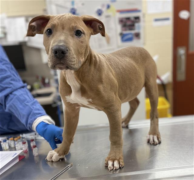 Hello! I am new to the shelter! Please keep checking my profile for updates as the staff gets to know me better!Few can resist a puppy. These adorable, soft bundles of energy are similar to four-legged children with tails. And like children, puppies need a lot of time, care, love, and patience. A puppy will depend on you for frequent and regular feedings and walks, for guidance and training, and for much of your time and your love. Before you plunge into puppy parenthood, make sure to research! There are many rewards to caring for a puppy, but there are also many requirements. Puppy classes are highly recommended for socialization and a positive transition into your home. Puppies love to learn how to be the best dog for your family!If this dog has been successful in our play groups it is not a guarantee that a dog will be social with other dogs in their home or in public settings. Dogs are individuals and have personality conflicts, just like us. Play groups do not guarantee that territorial or resource guarding issues will not surface in the home. While play groups do help us get to know the dog’s better, once they are adopted their new environments and new relationships will influence their behavior in ways we cannot predict.The Adoption Fee Includes:- initial canine distemper combination vaccination- first worming or stool check- rabies vaccination (for animals over 3 months of age)- 24 Petwatch microchipping- flea treatment/preventative- spaying or neutering-heartworm testingAdoption fee: $235.00Per state law, ALL ADOPTERS must purchase a non-refundable 2025 dog license at time of adoption for any canine three months and older. The cost of the license is $9.20. (Senior Citizen or Person with Disability-$7.20)All dogs come with free leash and collar.