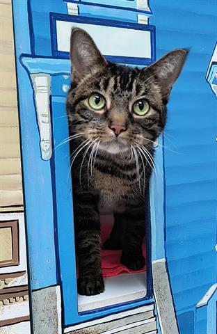 Georgie was adopted in 2018. Her owner passed away and she is hoping to mend her broken heart. In her time here, we noticed a shy cat who loves to hide under blankets. And when you find her, she will pop her head up and talk to you! She is a sweet girl who hopes to find her forever home soon!