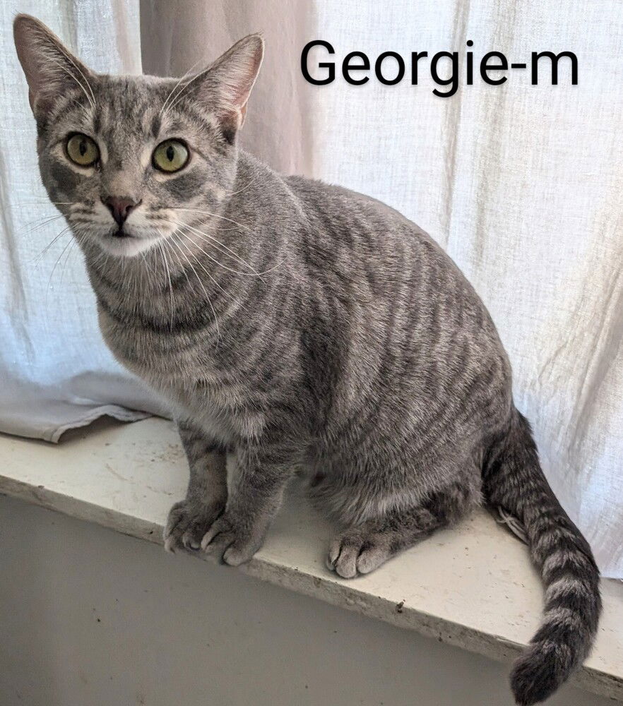 See Georgie’s HomepageGo to our official websiteYou can fill out an adoption application online on our official website.AVAILABLE FOR ADOPTION! Georgie is one of a litter of 7 kittens from Rialto and is grey tabby. His mama has had multiple litters but will be getting spayed soon. Georgie has 6 "ABC" littermates: Annie, Bonnie, Carrie, Dollie, Ernie, and Frankie. A-D are girls and the boys are E-G. Georgie is a character. He's a big manchild. Super friendly, kind of feisty and he demands attention by climbing on furniture and gently tapping you to get your attention. The adoption fee includes being spayed/neutered, treated for fleas and worms, current shots and being chipped. We also pay for the initial chip registration. Adoption events are held Sundays at the Fontana Petco 12-4pmhttps://petstablished.com/adoption_form/32024/genericApply on-line using the link to our application. Please be sure to use the species specific application for a dog or cat. Adoption events are held every Sunday, excluding holidays, at the Fontana Petco. The Fontana Petco is located at the corner of Sierra and Sierra Lakes Parkway, just off the 210 freeway,