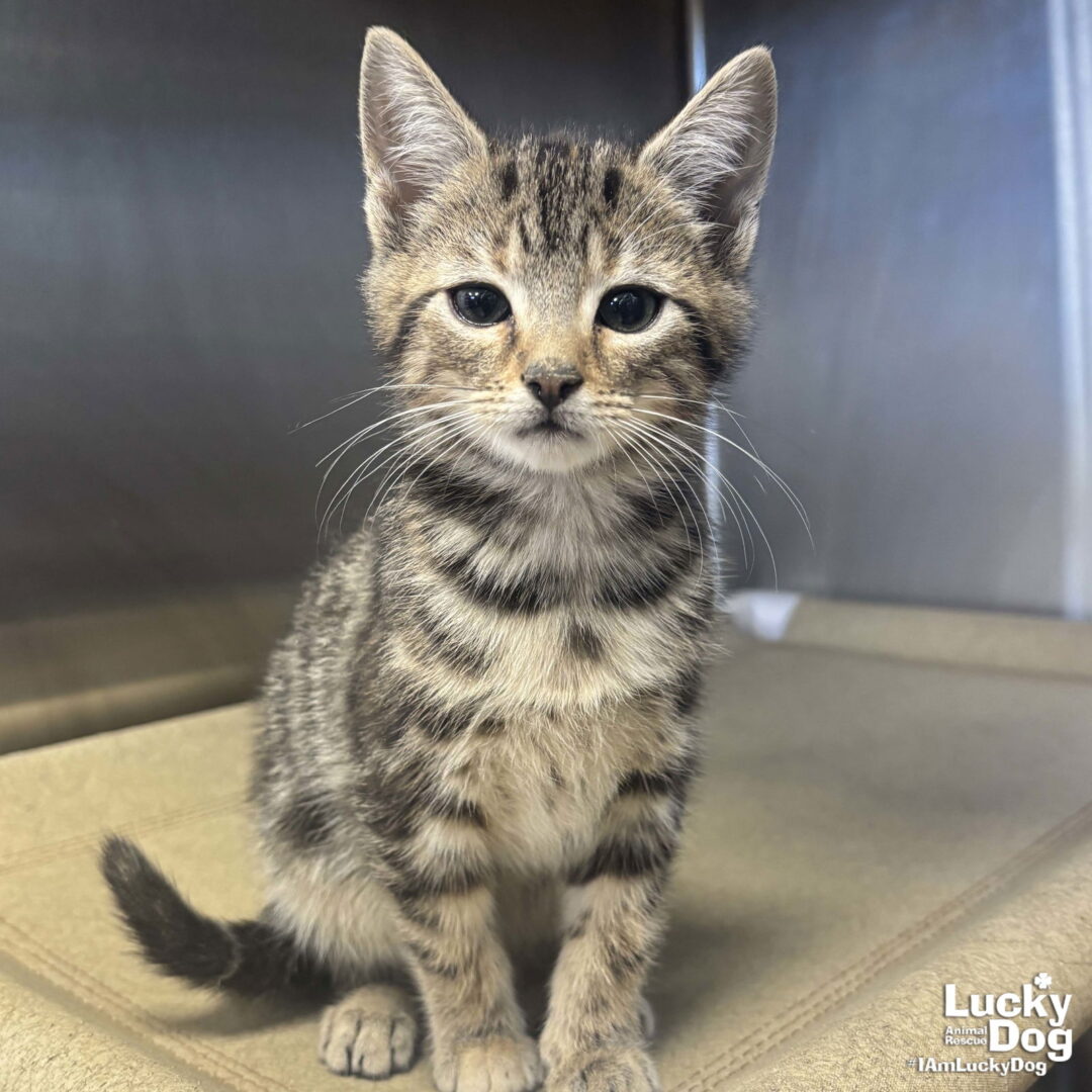 Please contact Lauren McCarty (laurenmc@luckydoganimalrescue.org) for more information about this pet.Sweet kitten needs a forever home!GEORGIE NEEDS A FOREVER HOME! Name: Georgie Best Guess for Breed: Domestic Short Hair Age: 10 weeks on 12/19/25 Est. DOB: 10/10/25 SEX: Female Weight: 1.65lbs Coloring: Brown Tabby Type of Hair: Short Gets Along With: Because of her young age, Georgie will likely get along with other cats, dogs and kids with an acclimation period. We’re happy to help with tips and tricks! Currently Living at: foster in the DC Area I am Looking For: My loving forever family! Hi! I’m Georgie, and I am a cute little kitten! I won’t ask for much- just some love, cuddles and lots of toys so I can run and play and be my kitten self. Two kittens are better than one – consider adopting one of my super cute siblings too! Litter: Gab, Gary, Gavin, Georgie, Giselle & Grant What my Foster Says About Me: Coming soon! Kitten Vetting Requirements: Your kitten may not be fully vaccinated upon adoption. You will be responsible for providing whatever remaining vaccines are needed to complete the kitten vaccine series. Due to this kitten’s young age, she/he has not yet been spayed or neutered. As part of the adoption contract, it will be your responsibility, as the adopter, to ensure that this is done no later than 4/10/26. There are NO EXCEPTIONS and NO EXTENSIONS to this date. A non-refundable spay/neuter deposit will be collected if you would like Lucky Dog to pay for this animal to be spayed/neutered at one of our low-cost partner vets. TO ADOPT: The adoption fee for adult cats is $200 ($350 for two cats adopted together). The adoption fee for a kitten (under 7 months old) is $220 ($380 for two kittens adopted together).If you are interested in adopting, please complete the Adoption Questionnaire online at bit.ly/adoptaluckycat. Lucky Dog Animal Rescue does our best to provide accurate information about the cats we have for adoption. That said, we cannot make any guarantees about age, breed or temperament. Thank you for contacting Lucky Dog Animal Rescue and helping to save a life! Please visit us online at www.luckydoganimalrescue.org . BE A FOSTER!!! Fosters make it possible for Lucky Dog Animal Rescue to save and care for homeless and abandoned dogs! To learn about fostering, please contact fostering@luckydoganimalrescue.org BE A SPONSOR!!!! Sponsors help Lucky Dog support the many dogs we save. To learn more about sponsorship, please contact info@luckydoganimalrescue.org !