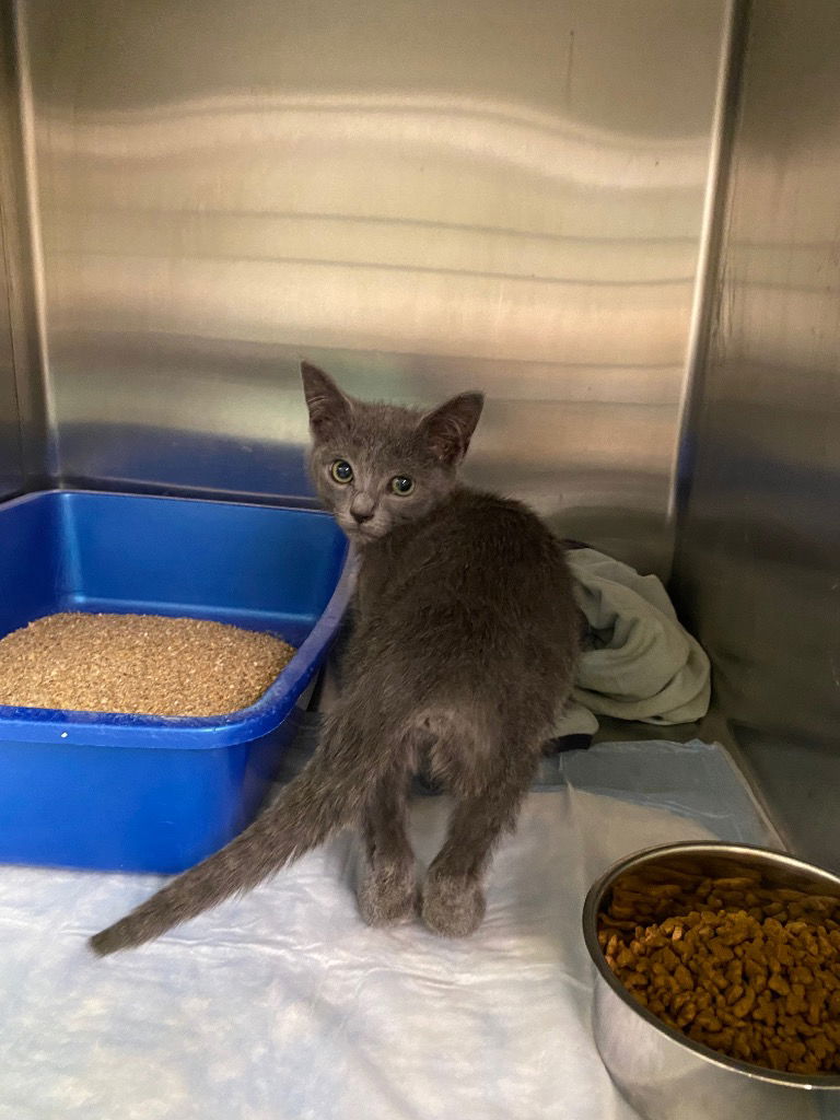 Ghost was found as a stray hiding under someone’s house. They kept seeing just a glimpse of her, which is why they called her a ghost. She is scared but sweet. She is now living with DG, and they are becoming best buds. All our young kittens are required to be adopted in pairs (or to homes with other cats or kittens) to prevent Single Kitten Syndrome. There are many benefits to adopting two kittens, including: One kitten can become bored and lonelyTwo kittens will keep each other busy and out of troubleHaving two kittens is very entertaining!You will have fewer behavioral issues with two kittensYou will help TWO babies get out of a shelter instead of one, and make room for us to help more! Our adoption fees are reduced for a second kitten. :)If you are interested in adopting this pet, please go to www.midwestpetrefuge.com/adopt to complete an application. If you have any questions, please email us at adopt@MidwestPetRefuge.comAll our pets are spayed/ neutered, microchipped, vaccinated and treated for parasites prior to adoption. We strive to match our adoptable pets to the best homes for their needs and personalities. Adoptions are not done on a first come, first serve basis. They are done in the order of what homes are the best match for that particular pet. If you'd like to apply, please go to our website, http://www.midwestpetrefuge.com Click on Adopt and choose the correct application. If you have not heard from us, please shoot us an email at midwestpetrefuge.com to check on the status of your application. Thanks!