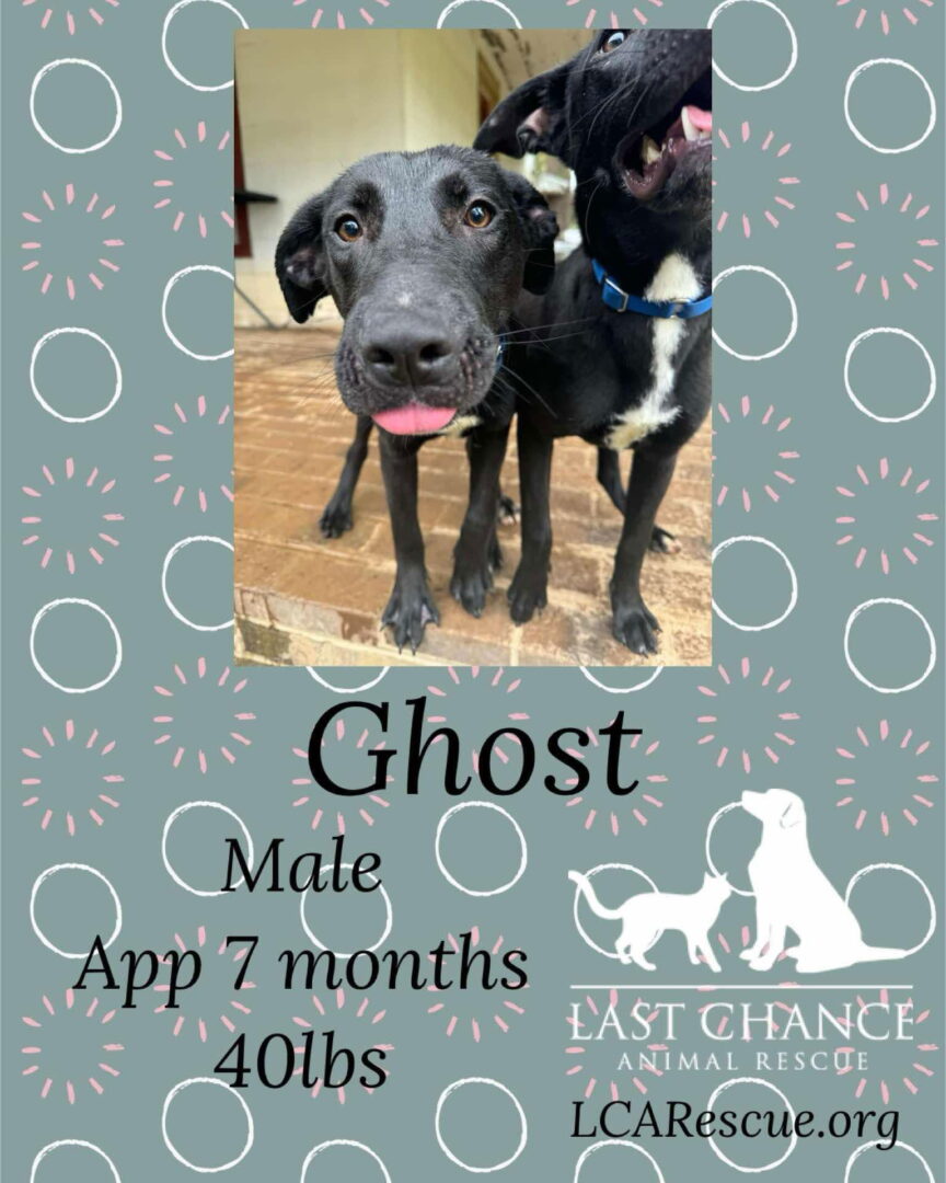 See GHOST’s HomepageGo to our official websiteYou can fill out an adoption application online on our official website.NEEDS ONE ON ONE TIME TO BE ABLE TO LEARN AND GROW – Ghost has learned to sit on command with consistent learning. super loving and dog friendly. Needs a home or foster to be able to have more one on one time to grow and learn.