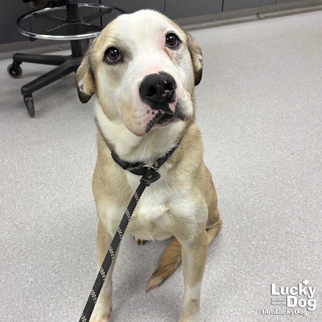 is sweet puppers! not supernatural being! GHOST NEEDS A FOSTER OR FOREVER HOME!!!! Name: Ghost Best Guess for Breed: Bulldog mix Best Guess for Age: 2 years as of February 2026 SEX: Male Approximate Weight: 45 lbs Gets Along With: Other dogs! We haven’t seen him with cats or kids but we are happy to discuss integration techniques with any potential adopters! Currently Living at: South Carolina shelter – needs a foster or forever home in the DC area to get up here. Ghost is Looking For: His forever home! A nice cozy one, not a haunted manse! He’s looking for his own humans to trot alongside on those sniffy walks and adventures! Making new pup pals along and having plenty of opportunity to run and play is on his wish list along with quality kibble and a cushy dog bed. But above all he wants to know where he belongs, to be under his own roof, to be safe and loved. In exchange, he promises adoring gazes and loyal companionship for all his days. What do you say? Can you see him by your side?What My Foster Says About Me: We will update this once he ha spent time in foster care. Lucky Dog cannot guarantee any dog is housebroken. All of our dogs are working on their crate training. TO ADOPT: The adoption fee for this dog is $460, which includes the cost of routine vetting, including vaccinations and spay/neuter. If you are interested in adopting, please complete the Adoption Questionnaire online at bit.ly/adoptaluckydog . Lucky Dog Animal Rescue does our best to provide accurate information about the dogs we have for adoption. That said, we cannot make any guarantees about age, breed or temperament. Thank you for contacting Lucky Dog Animal Rescue and helping to save a life! Please visit us online at www.luckydoganimalrescue.org . BE A FOSTER!!! Fosters make it possible for Lucky Dog Animal Rescue to save and care for homeless and abandoned dogs! To learn about fostering, please contact fostering@luckydoganimalrescue.org! BE A SPONSOR!!!! Sponsors help Lucky Dog support the many dogs we save. To learn more about sponsorship, please contact info@luckydoganimalrescue.org !
