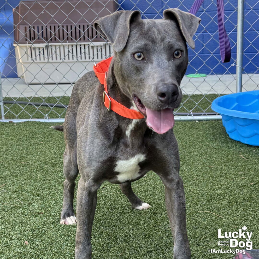 handsome young boy ISO happily ever after! GIBBY NEEDS A FOSTER OR FOREVER HOME!!!! Name: Gibby Best Guess for Breed: Weimaraner and Lab mix Best Guess for Age: 2 years as of March 2025 SEX: Male Approximate Weight: 38 lbs Gets Along With: Other dogs! We haven’t seen him with kids but he can be tested if you have them. Currently Living at: South Carolina shelter; needs a foster or forever home to get his freedom ride up here. Gibby is Looking For: His forever home! This pretty awesome pup landed in the shelter due to no fault of his own and he’s eager to once again have his own family, to love and be loved. He’s ready to trot by his human on long sniffy walks and all the adventures they can dream up. Making new pup pals along the way sounds great too. Quality kibble, a cushy dog bed and dog toys round out his wish list but you know what he wants most of all? To know where he belongs, to be a loyal companion for all his days. What do you say? Is this playful cutie the one for your home and your heart? What My Foster Says About Me: We will update this once he has arrived in the DC area and spent some time with his foster. Lucky Dog cannot guarantee any dog is housebroken. All of our dogs are working on their crate training. TO ADOPT: The adoption fee for this dog is $460, which includes the cost of routine vetting, including vaccinations and spay/neuter. If you are interested in adopting, please complete the Adoption Questionnaire online at bit.ly/adoptaluckydog . Lucky Dog Animal Rescue does our best to provide accurate information about the dogs we have for adoption. That said, we cannot make any guarantees about age, breed or temperament. Thank you for contacting Lucky Dog Animal Rescue and helping to save a life! Please visit us online at www.luckydoganimalrescue.org . BE A FOSTER!!! Fosters make it possible for Lucky Dog Animal Rescue to save and care for homeless and abandoned dogs! To learn about fostering, please contact fostering@luckydoganimalrescue.org! BE A SPONSOR!!!! Sponsors help Lucky Dog support the many dogs we save. To learn more about sponsorship, please contact info@luckydoganimalrescue.org !
