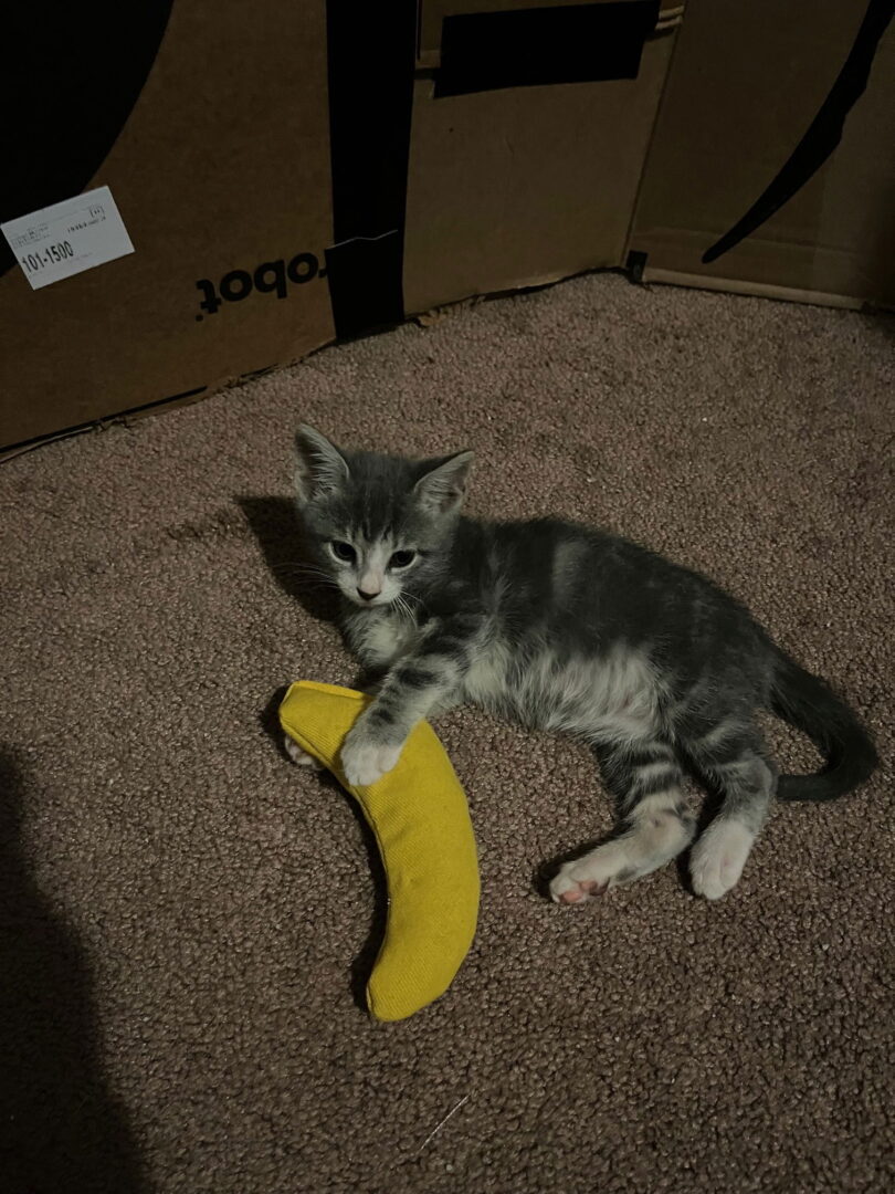 Gin Fizz is the smallest of the litter, but she has a big personality! She is a gentle little sweetheart who loves to observe. She would fit right in in a home filled with arts and crafts, movie nights, and the occasional belly rub. Gin likes to sit to the side watching everything that’s going on, but is easily convinced to play with toys. She walks up for attention occasionally and will no doubt warm up to cuddles in no time. Note: if you do not have any other pets, we require that you adopt TWO kittens. This is for the benefit of the kitten for behavioral development. Companionship is critical. They will also entertain each other and you! We offer a low cost spay and neuter package. This cat has tested FeLV/FIV. negative, is current on vaccinations, parasite-free and litter-box trained. To hasten the adoption process, please complete our adoption form online at https://forms.gle/5xfPr3EUdSYSyAGV7. We currently showing Cats at the Black cat Café in Devon www.theblackcatcafedevon.Org FOR MORE DETAILED INFORMATION: Email us at 4palsvolunteers@gmail.com- this will get you the quickest response to your questions! You may also call or text Pat Maloney at 610-299-1860 Or simply apply at www.palspets.org If you would like to volunteer or foster, please complete our volunteer or foster forms at www.palspets.org Thank you!