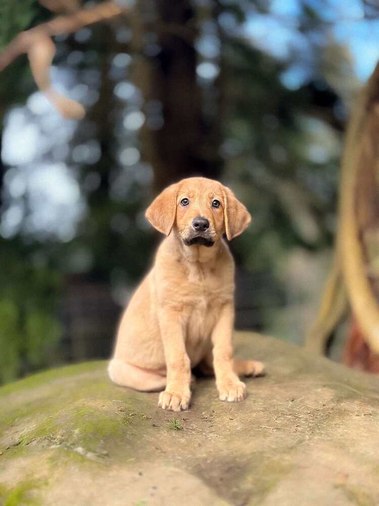 11 weeks old – born 12.20.24Chessie/shepherd mix (large breed)Currently 23lbsGinger has been one of the leaders in the pack! She loves to play and cuddle up with her siblings, and is very loving to people. She has been socializing around other dogs, people and kids since she was born. Ginger is ready to find her forever home.She has received her first round of vaccines, three rounds of dewormer and is microchipped already. In order to adopt Ginger, she will need to be signed up for puppy classes, continued vaccines, and have a refundable spay deposit ($170) paid.