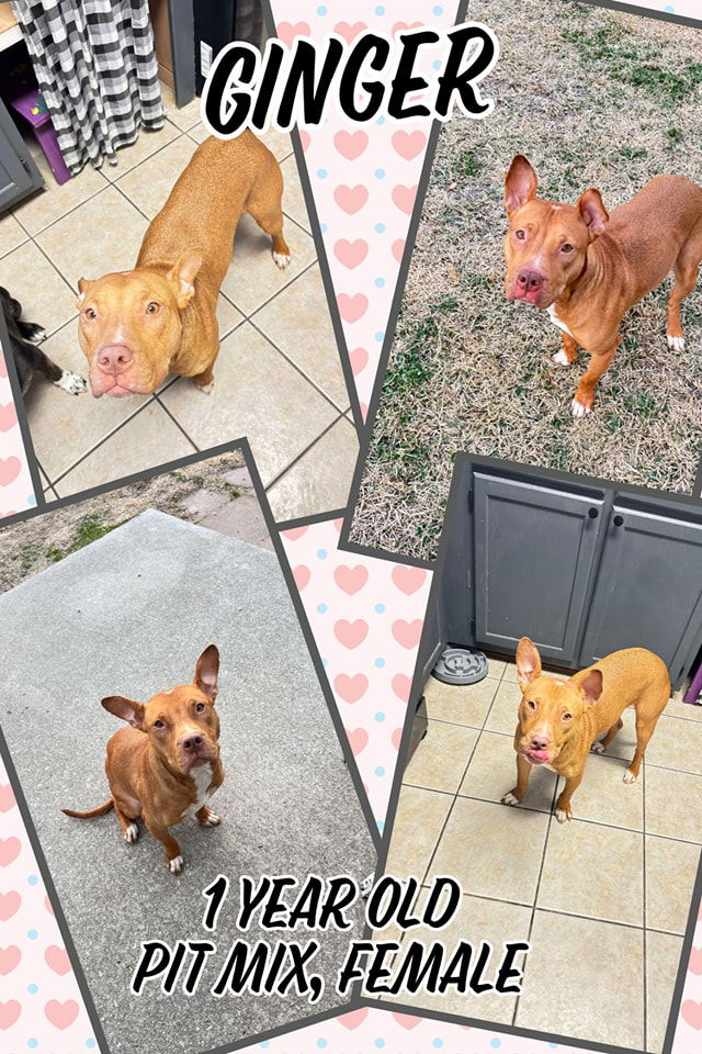 My adoption fee is $250 which covers my annual distemper booster, rabies, and being spayed/neutered and microchipped. Ginger is a fiery redhead! She loves to be a part of everything and anything that is going on. She tries really hard to listen, but she is just so excited to have people and other dogs around, she just can’t help it. She does have good manners, if you take the time to understand her (with treats of course). She gives the best kisses and she will clear jump across a room to jump in your lap to cuddle like a little baby. She is working on potty training, but we are not all the way there yet. She has not been aggressive with the other 4 dogs in the home, but she is certainly curious about what they are doing.