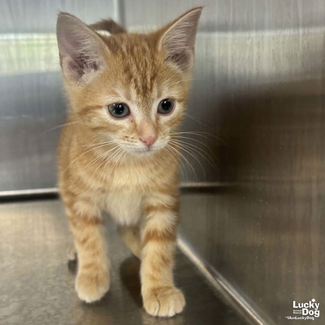 Please contact Lauren McCarty (laurenmc@luckydoganimalrescue.org) for more information about this pet.Sweet kitten needs a forever home!GISELLE NEEDS A FOREVER HOME! Name: Giselle Best Guess for Breed: Domestic Short Hair Age: 10 weeks on 12/19/25 Est. DOB: 10/10/25 SEX: Female Weight: 1.98lbs Coloring: Orange Tabby Type of Hair: Short Gets Along With: Because of her young age, Giselle will likely get along with other cats, dogs and kids with an acclimation period. We’re happy to help with tips and tricks! Currently Living at: foster in the DC Area I am Looking For: My loving forever family! Hi! I’m Giselle, and I am a cute little kitten! I won’t ask for much- just some love, cuddles and lots of toys so I can run and play and be my kitten self. Two kittens are better than one – consider adopting one of my super cute siblings too! Litter: Gab, Gary, Gavin, Georgie, Giselle & Grant What my Foster Says About Me: Coming soon! Kitten Vetting Requirements: Your kitten may not be fully vaccinated upon adoption. You will be responsible for providing whatever remaining vaccines are needed to complete the kitten vaccine series. Due to this kitten’s young age, she/he has not yet been spayed or neutered. As part of the adoption contract, it will be your responsibility, as the adopter, to ensure that this is done no later than 4/10/26. There are NO EXCEPTIONS and NO EXTENSIONS to this date. A non-refundable spay/neuter deposit will be collected if you would like Lucky Dog to pay for this animal to be spayed/neutered at one of our low-cost partner vets. TO ADOPT: The adoption fee for adult cats is $200 ($350 for two cats adopted together). The adoption fee for a kitten (under 7 months old) is $220 ($380 for two kittens adopted together).If you are interested in adopting, please complete the Adoption Questionnaire online at bit.ly/adoptaluckycat. Lucky Dog Animal Rescue does our best to provide accurate information about the cats we have for adoption. That said, we cannot make any guarantees about age, breed or temperament. Thank you for contacting Lucky Dog Animal Rescue and helping to save a life! Please visit us online at www.luckydoganimalrescue.org . BE A FOSTER!!! Fosters make it possible for Lucky Dog Animal Rescue to save and care for homeless and abandoned dogs! To learn about fostering, please contact fostering@luckydoganimalrescue.org BE A SPONSOR!!!! Sponsors help Lucky Dog support the many dogs we save. To learn more about sponsorship, please contact info@luckydoganimalrescue.org !