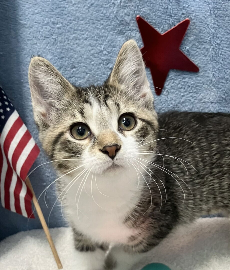Gleam – Tiny Gourmet, Shoulder Explorer, Certified Princess. Meet Gleam, the smallest of her siblings, but don’t let that fool you—this kitten reigns supreme in sweetness, style, and snack selectiveness. With a heart as big as her eyes and a face cute enough to stop traffic, Gleam is the kind of girl who turns every lap into a throne and every shoulder into a runway. She eats like a miniature aristocrat: a dab of pâté, a swirl of chicken shreds, and a gentle spooning of seafood mousse—thank you very much. She's a slow, deliberate eater because, obviously, royalty does not rush. When she’s not curled up on your chest like a warm purring brooch, Gleam is climbing, playing, or dramatically gazing out from the screened porch like a Victorian heroine waiting for her beloved (or maybe just a squirrel). She's agile, dainty, and fiercely graceful—like a ballerina with a mischief streak. Gleam was raised alongside a bunny, a chihuahua, and two dramatic brothers (Glisten and Glow), so she’s perfectly socialized and totally used to nonsense. She’ll likely stay petite like her mom, which only amplifies her “small but mighty” energy. If you're ready to be adored by a snack-size cuddlebug who treats every cuddle like a royal audience—Gleam awaits. DOB 3/25/2025 **Come meet me at the cage free adoption center! All cats are spayed or neutered, vaccinated and tested for FIV/FeLV. **If interested in adopting me, please fill out an online adoption application at https://colonycats.org/adoption_app.html to expedite the process. Due to the large number of inquiries received, we are unable to respond to emails quickly.**