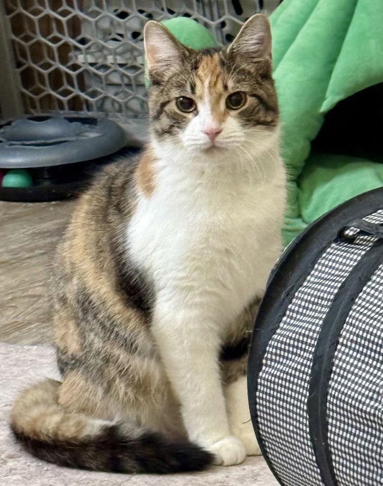 Meet the wonderful kittens of Oz! This magical litter of five siblings are ready to follow the yellow brick road to their forever homes. They are about six months old, very playful, and want to be best friends with every other cat they've met!Glinda is a stunning tabico girl with the most beautiful coloring and markings. Glinda is the most shy of her little and is the calmest of her siblings. She is very interested in people and enjoys playing but seems a little overwhelmed with her more rambunctious siblings. She loves sparkly ball and mouse toys and cuddling with her siblings. She likes to hang out nearby, happily purring and observing the chaos and will venture closer when her siblings slow down.Glinda would do best in a calmer home where she has a patient family to continue her socialization. We think she would love to have other cat friends and will continue to come out of her shell when she doesn't have to compete as much for attention.