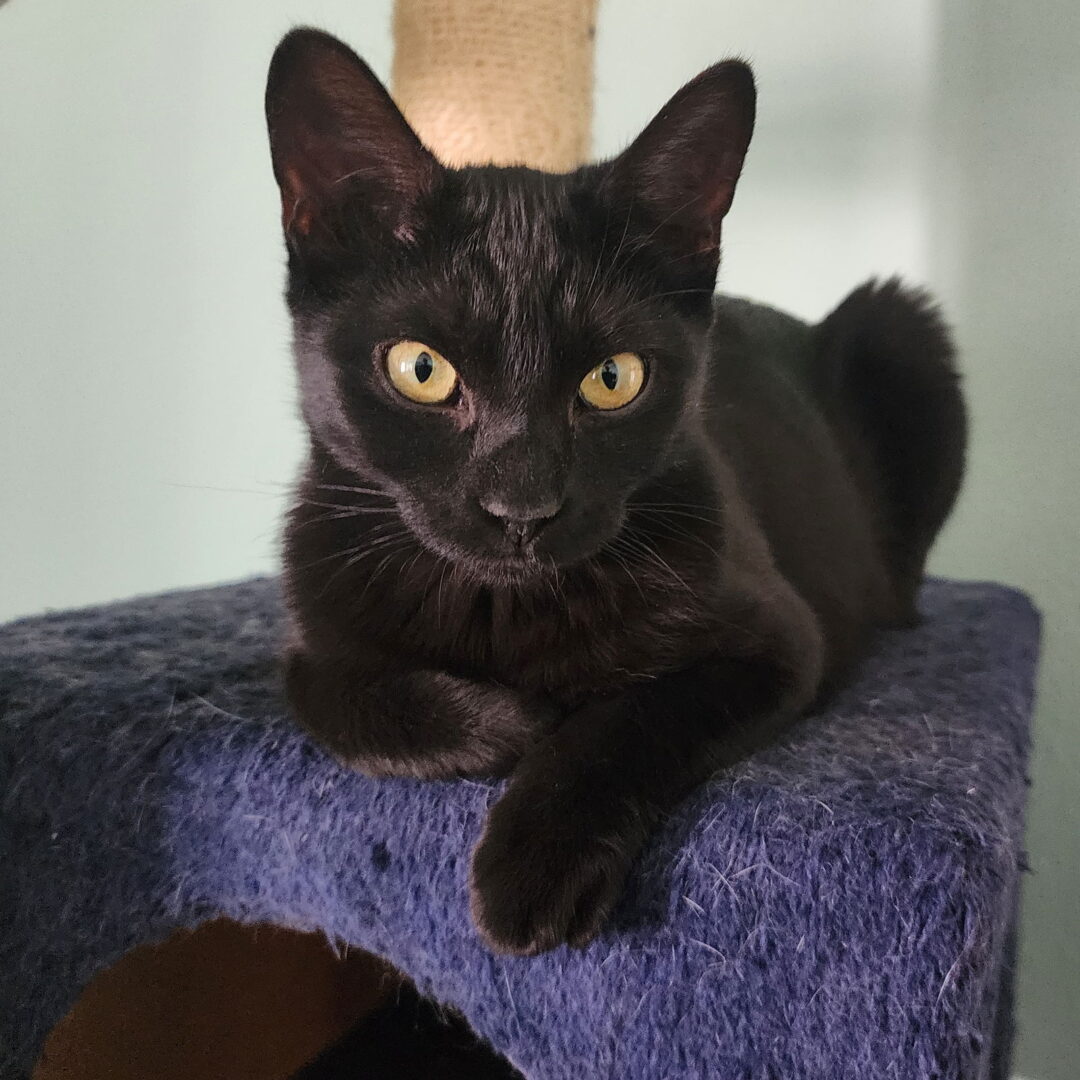 I am currently available for adoption from my foster home. If you’re interested in adopting me, fill out an application on our website www.carmaoc.org Hi! My name is Gloria Vanderbilt and I am a sweet all black beautiful kitten. I am playful and loving. I like to be around people and watch what they are doing. Once I’m tired and at night, I like to snuggle next to people on the bed. I am being fostered with a dog and other cats. Cats are okay, still not too sure about the rambunctious dog, but I do watch him. My adoption fee is $175. That includes spay/neuter, microchip, FIV/FeLV combo test, current vaccines and health check.