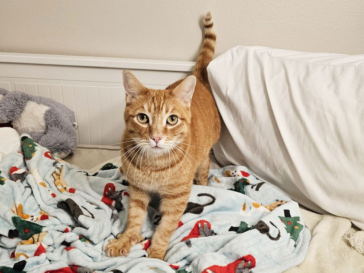 I am currently available for adoption from my foster home. If you’re interested in adopting me, fill out an application on our website www.carmaoc.org Hi! My name is Golly. Will you be my new friend? I am a very sweet boy who gets vocal when I want attention. I love making biscuits and will sit with you while you work from bed. I sometimes get over stimulated from how happy I get that I may give little love bites or over-groom my legs. We don’t yet know if I like other cats or dogs, but I would be happy being a single kitty too. I enjoy bird watching and sunny in windows. My adoption fee is $175. That includes spay/neuter, microchip, FIV/FeLV combo test, current vaccines and health check.